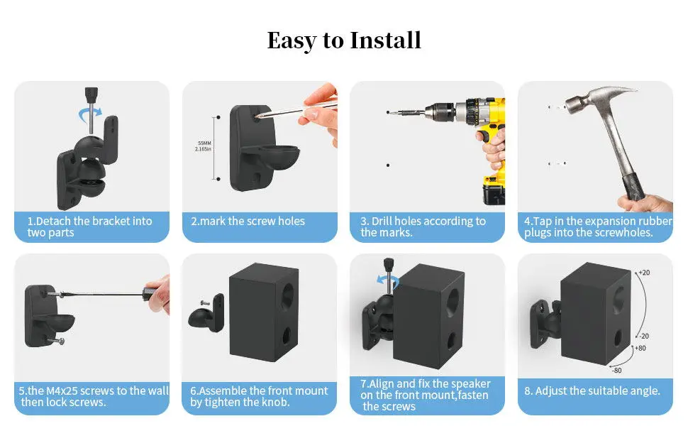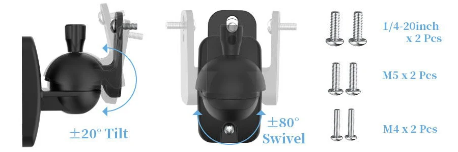 4. The product packaging is equipped with three sizes of screws: M4, M5, 1/4-20inch, which are used for screw fixing holes for different speakers, which can be used for almost all speakers.