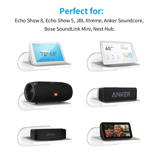 LINGYOU Wall Mount Outlet Shelf Holder for Amazon Echo Show 8 1st 2nd 5/Nest Hub/JBL Xtreme/Anker Soundcore/Bose