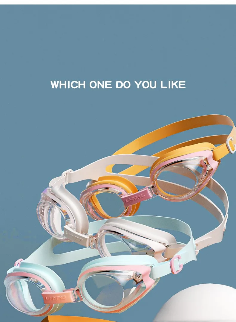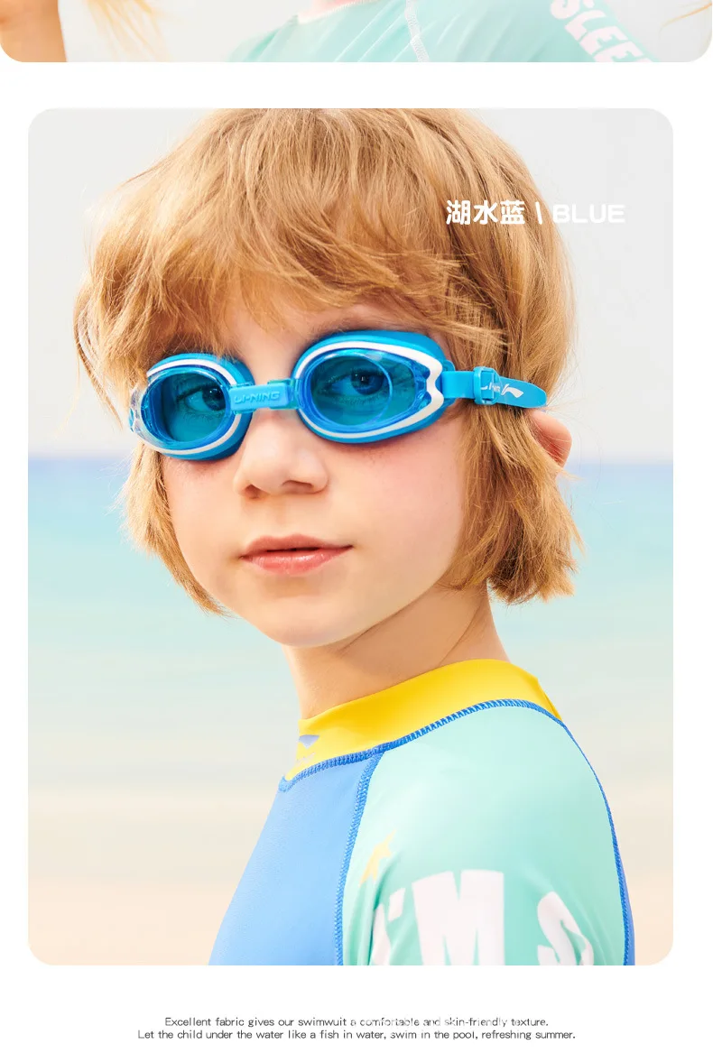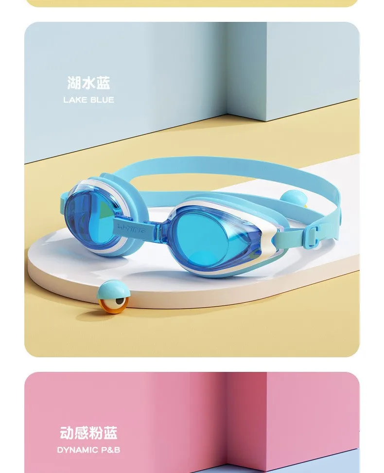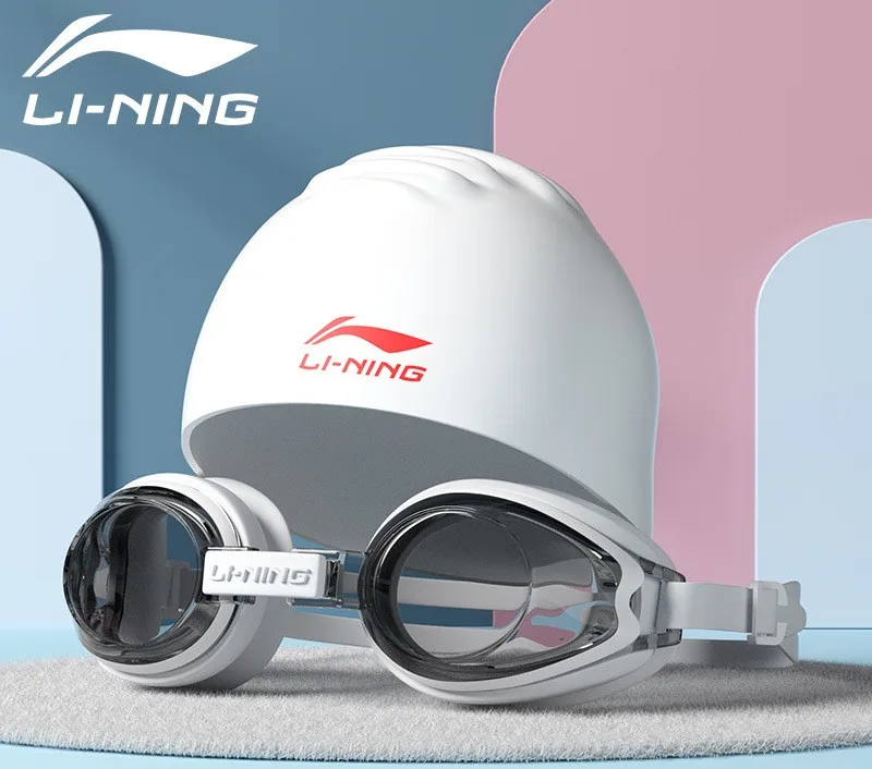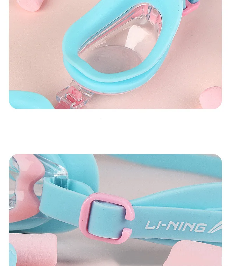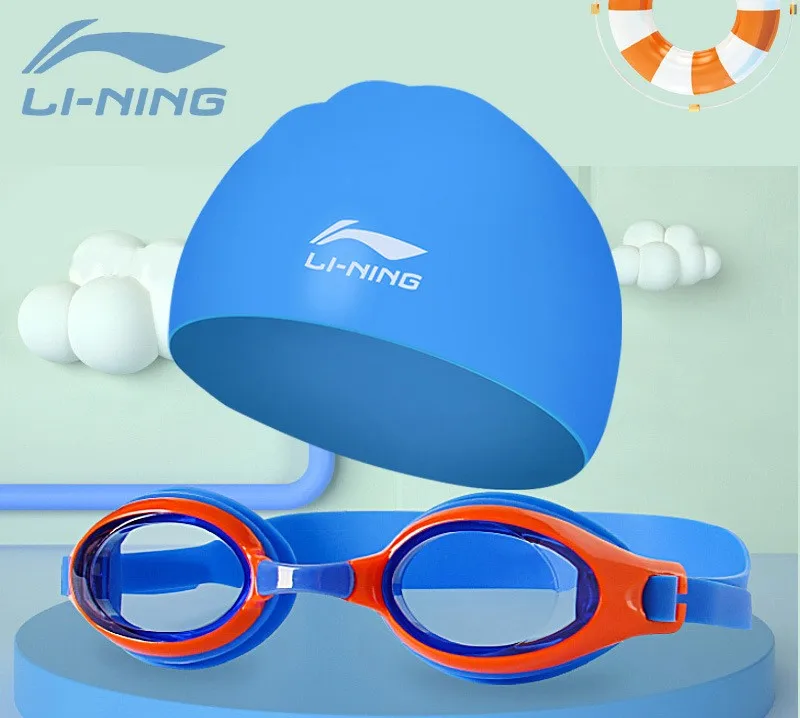LINING Kids Anti-Fog UV Protection Waterproof Adjustable Silicone Swim Goggles+Caps Professional Sports