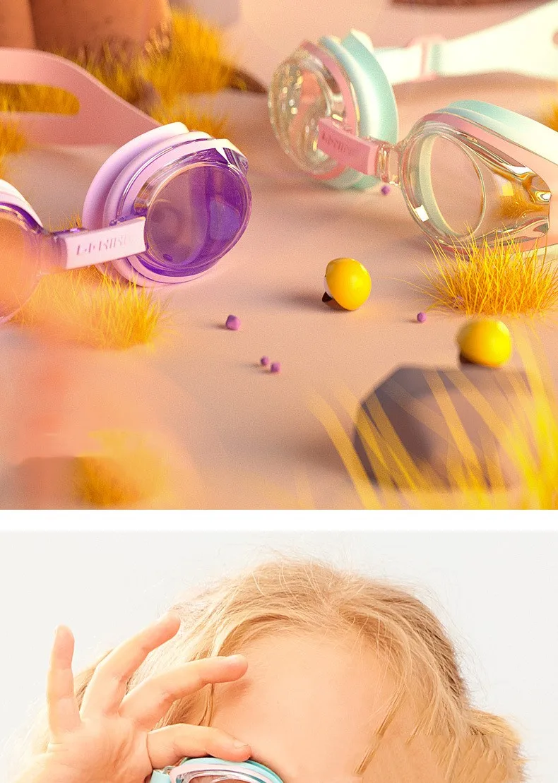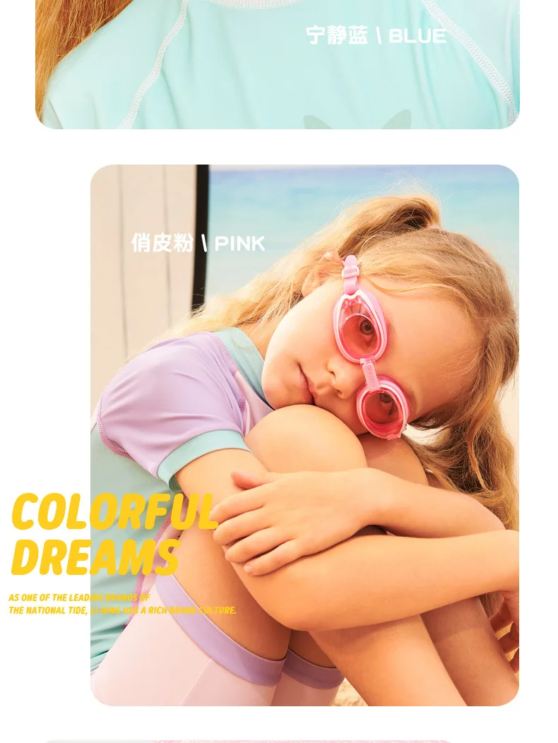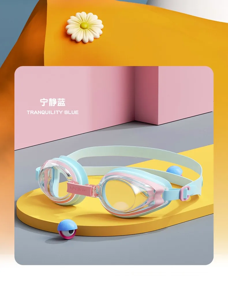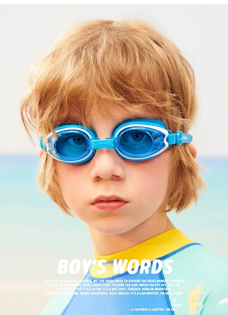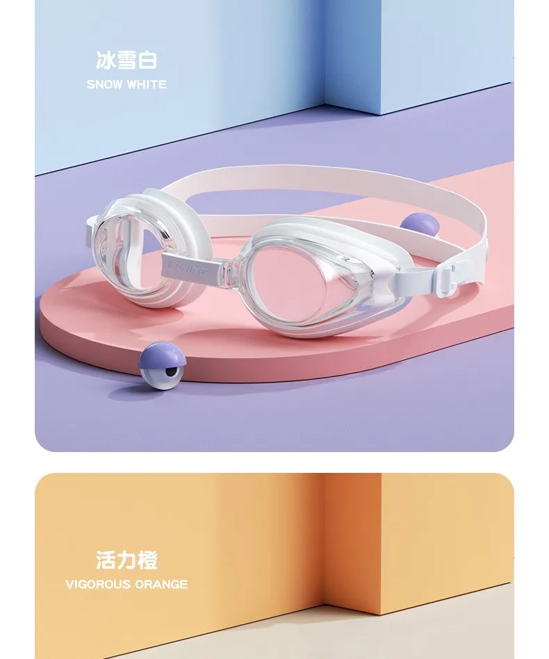 LINING Kids Anti-Fog UV Protection Waterproof Adjustable Silicone Swim Goggles+Caps Professional Sports