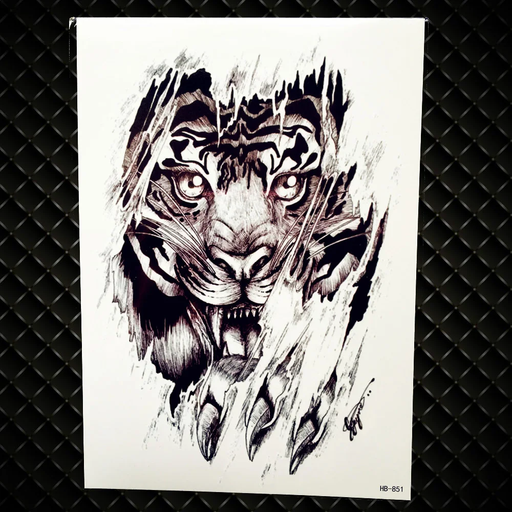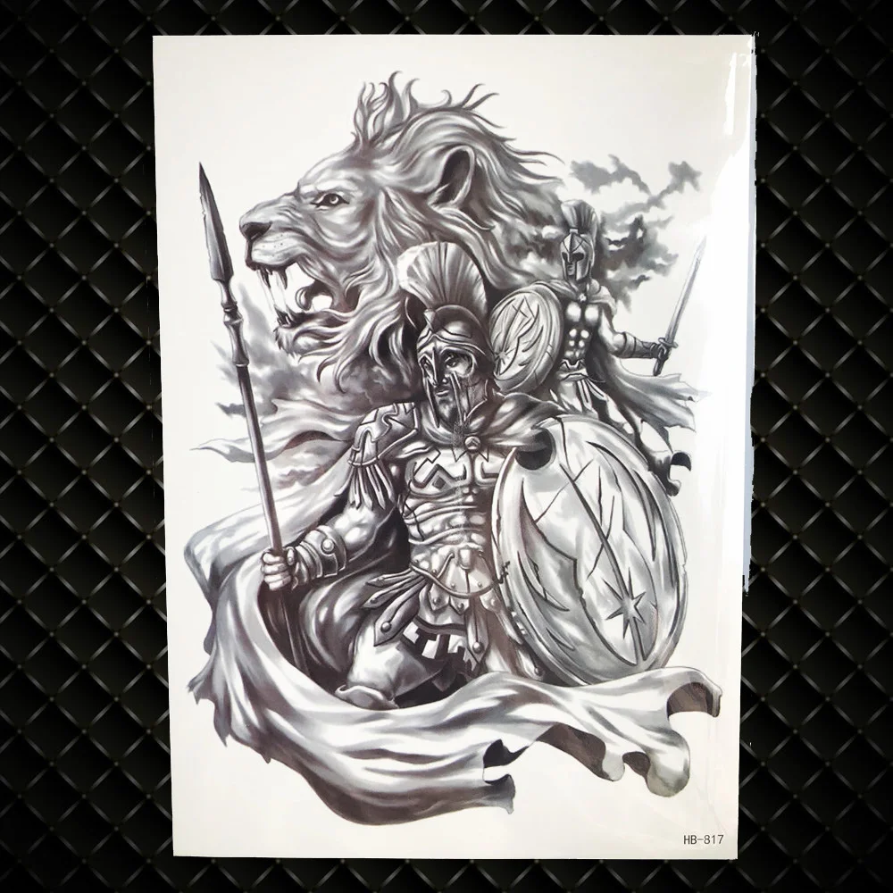 Lion King Warrior Temporary Tattoo Stickers Men Robot Arm Fake Waterproof Maori Tattoos Body Art Black Totem Tatoo Paper