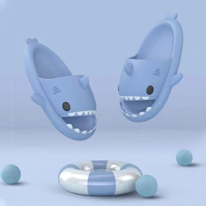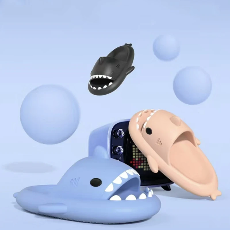 Litfun Cute Shark Slippers For Men Women Outdoor Thick Sole Beach Sandals Summer New Cartoon Flip Flops Soft House Shark Slides