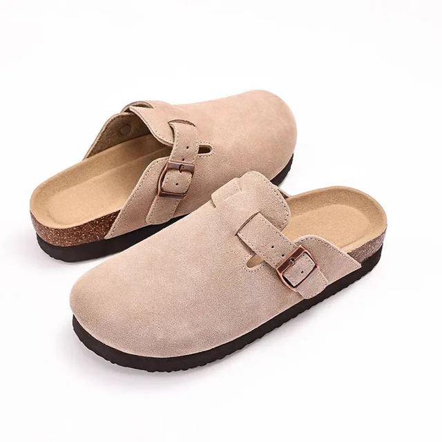 Litfun Men Suede Clogs Home Slippers Fashion Leather Flat Mules Women Cork Footbed Beach Sandals Potato