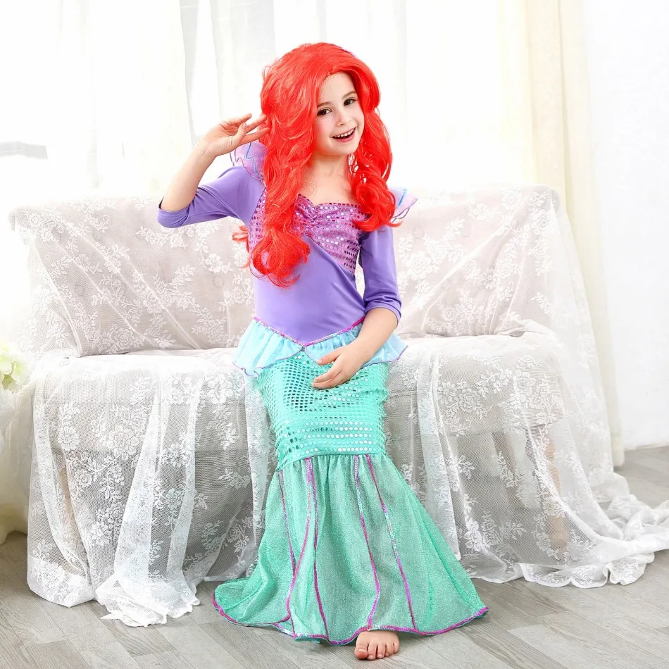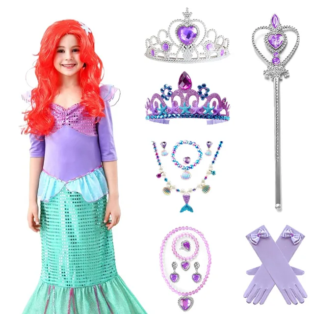 Little Mermaid Ariel Accessories for Baby Girls Crown Necklace Hair Hoop Wig Glove Lovely Parts Birthday