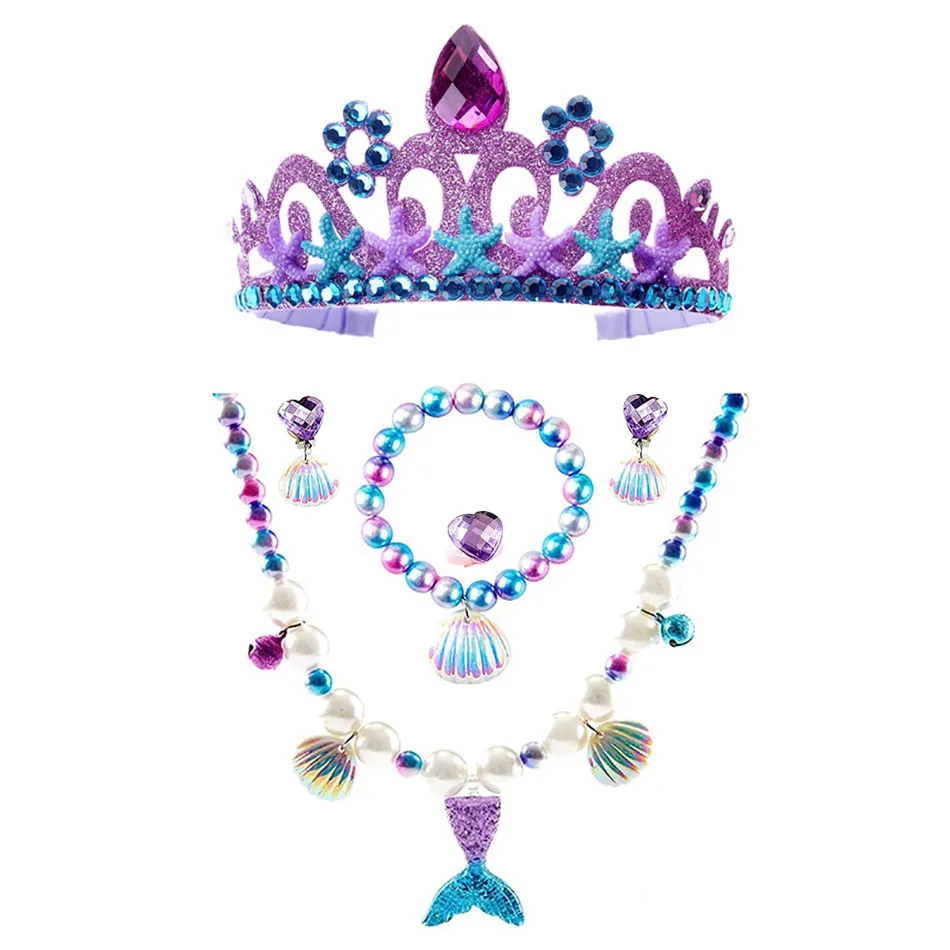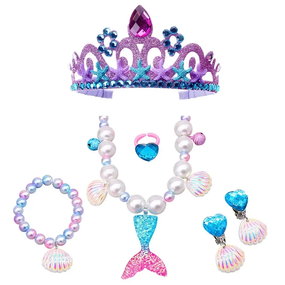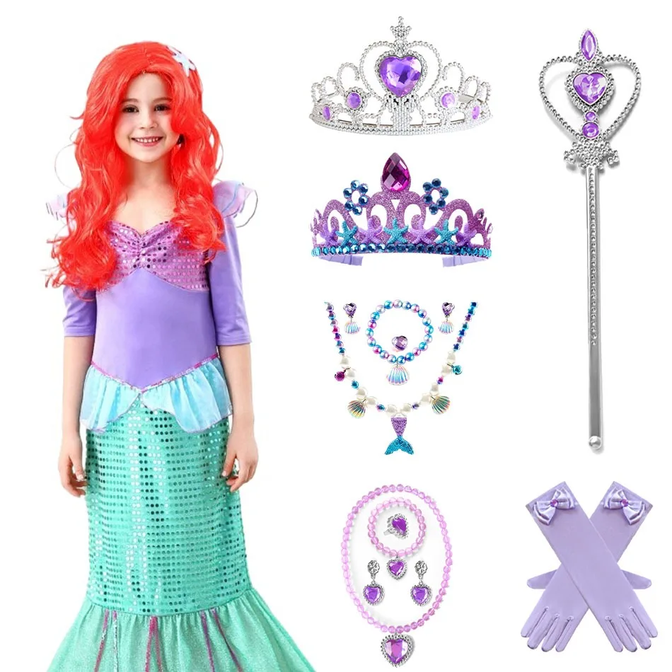 Little Mermaid Ariel Accessories for Baby Girls Crown Necklace Hair Hoop Wig Glove Lovely Parts Birthday Cosplay Dress Ornament