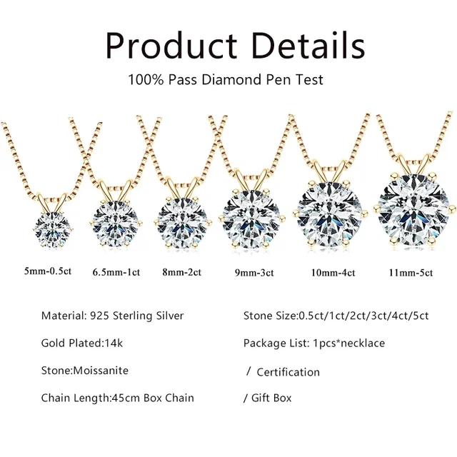Be the first to review “Lnngy 0.5ct-5ct Moissanite Pendant Necklace With Certificate For Women Original Real 925 Silver Chain”