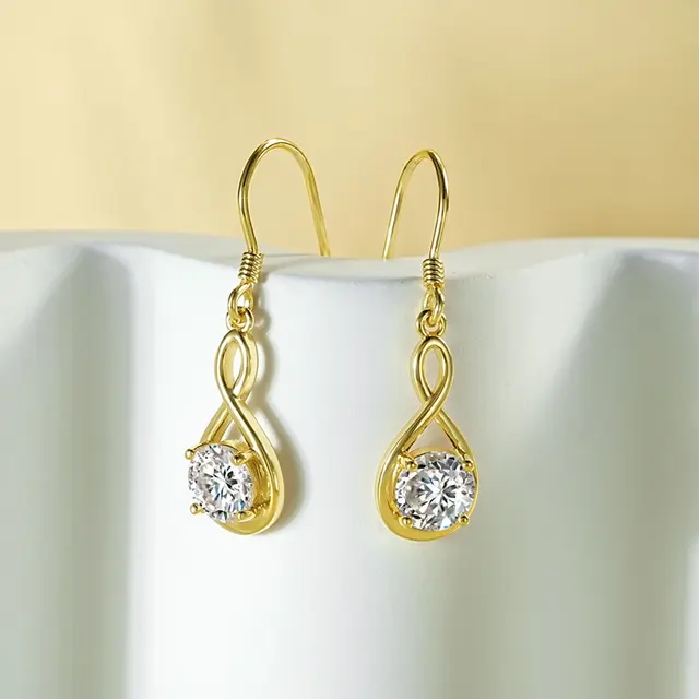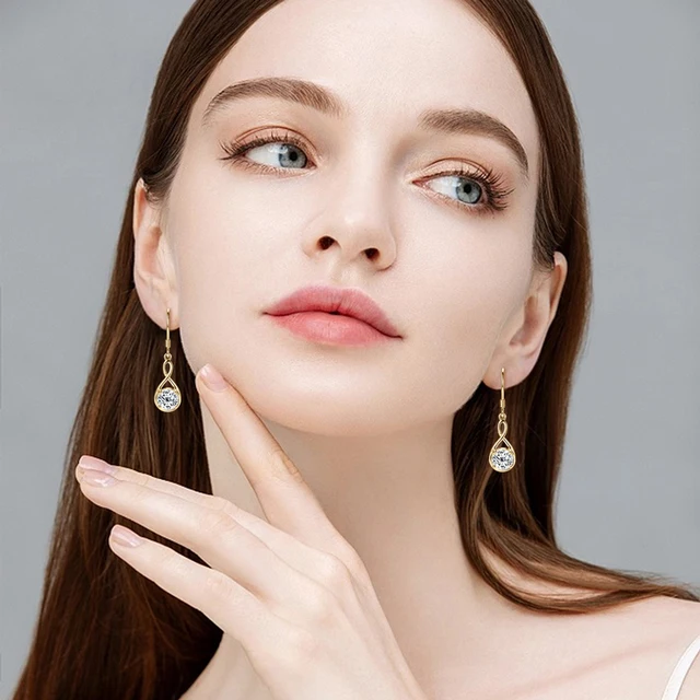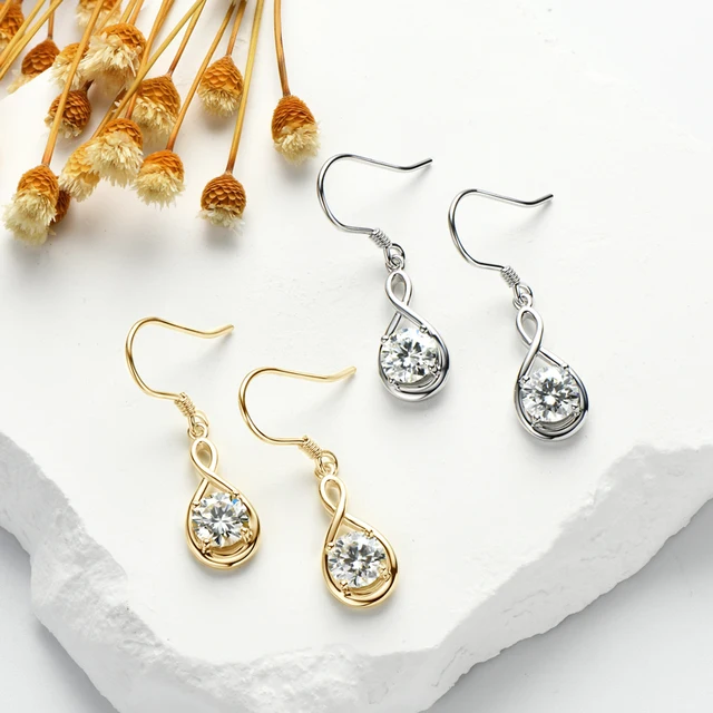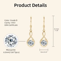 Lnngy 1.0ct Round Moissanite Dangle Hook Earring 925 Sterling Silver Ladies Light Luxury Earring for Women Fashion Jewelry Gift
