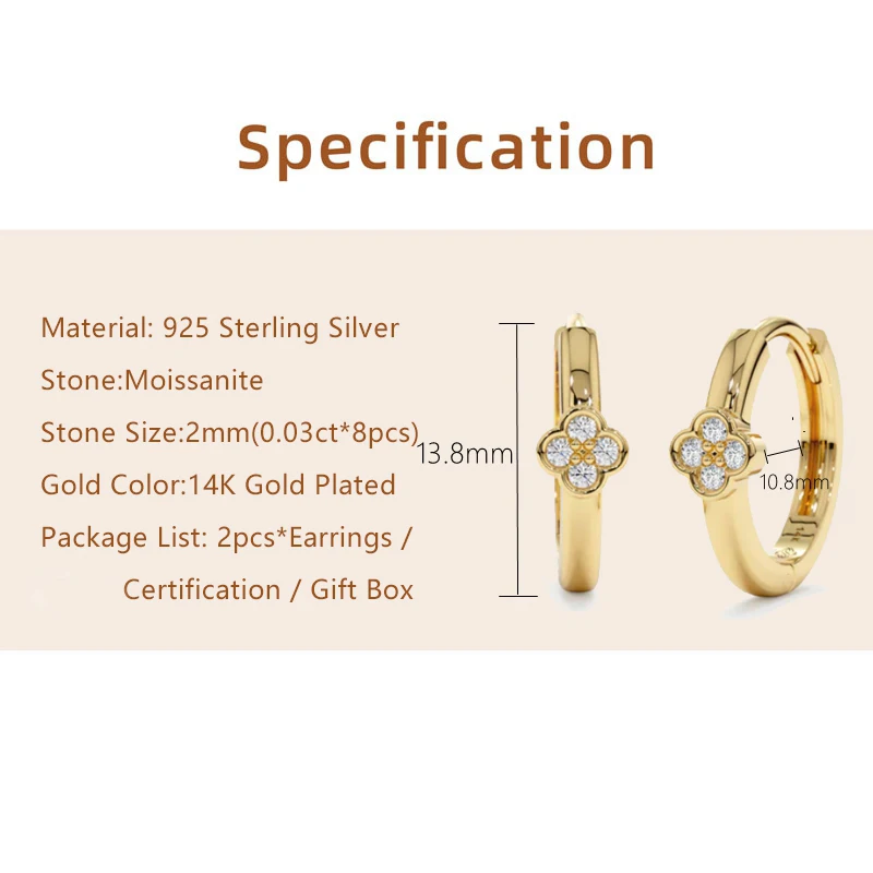 Be the first to review “Lnngy 2MM Moissanite Diamond Earring Oorbellen Zilver 925 Sterling Silver Lucky Clover Hoop Earrings”
