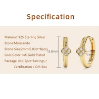 Lnngy 2MM Moissanite Diamond Earring Oorbellen Zilver 925 Sterling Silver Lucky Clover Hoop Earrings