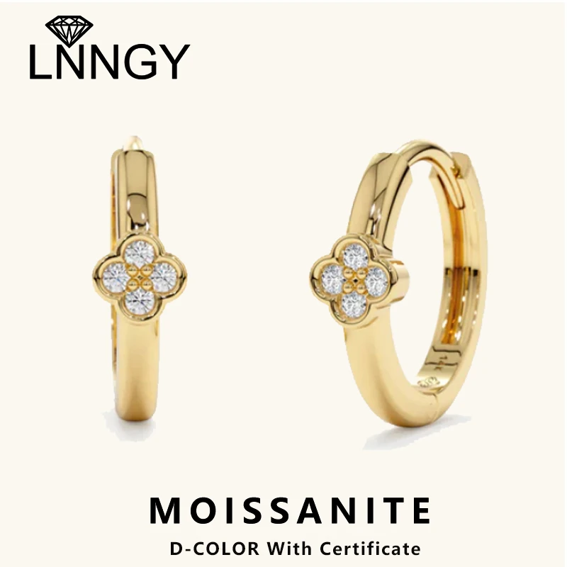 Lnngy 2MM Moissanite Diamond Earring Oorbellen Zilver 925 Sterling Silver Lucky Clover Hoop Earrings For Women Jewelry Gift