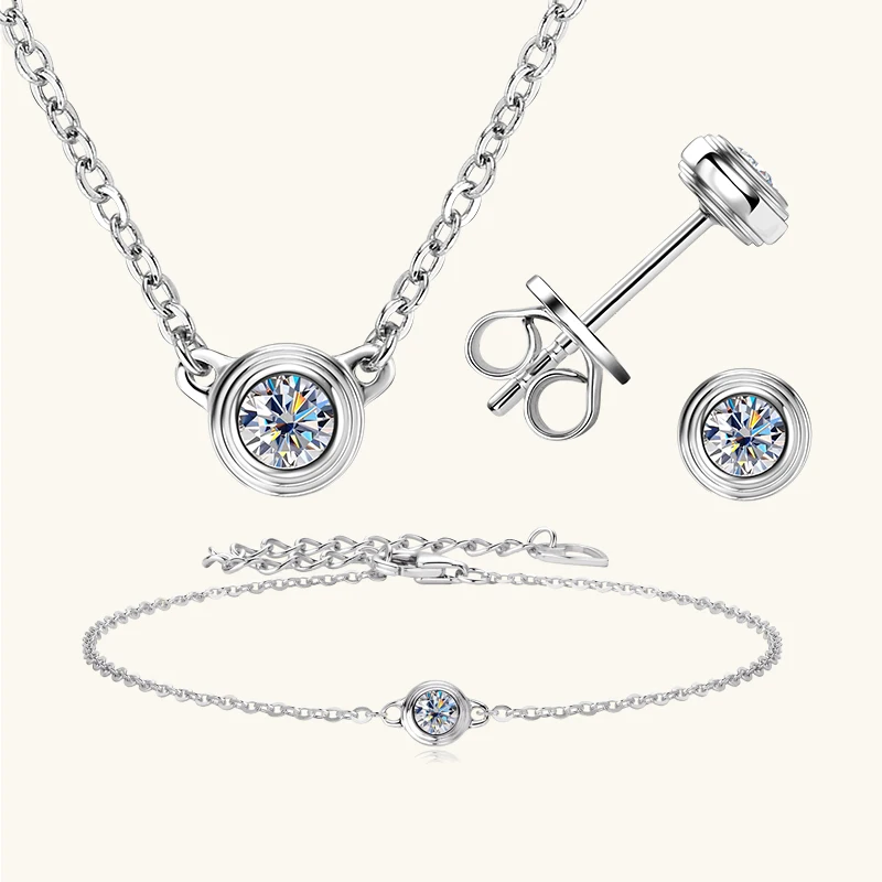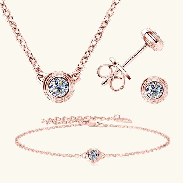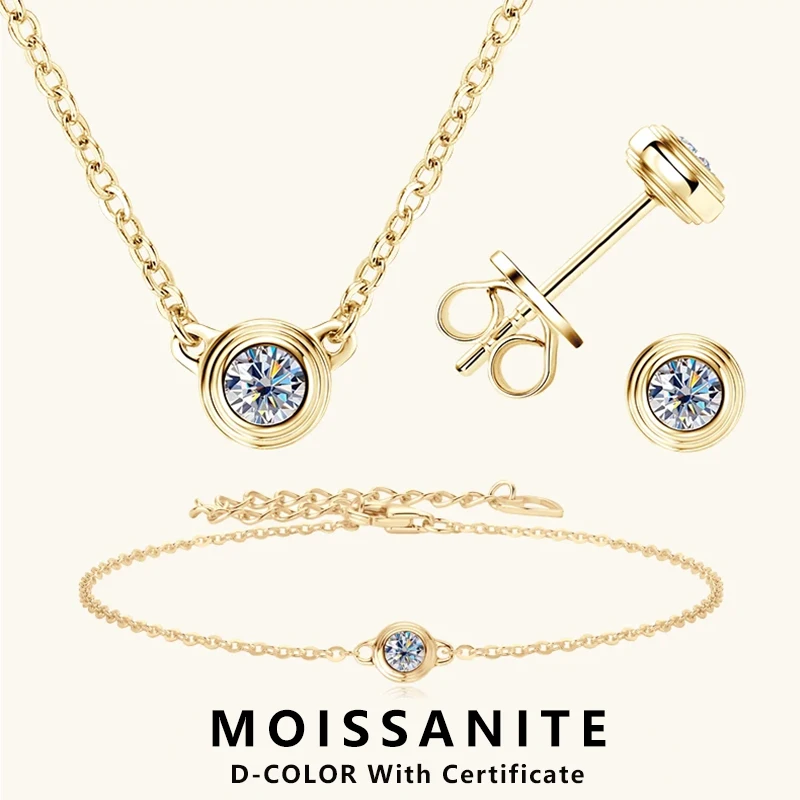 Lnngy 3mm 0.1ct Moissanite Diamond Necklace Bracelet Stud Earring For Women Simple Single Stone Earrings Bracelets Jewelry Set
