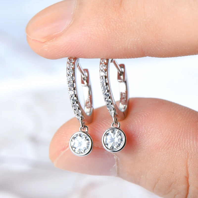 Lnngy 3mm 4mm Bezel Moissanite Drop Earrings Brinco Prata 925 Sterling Silver Earring For Women Girls