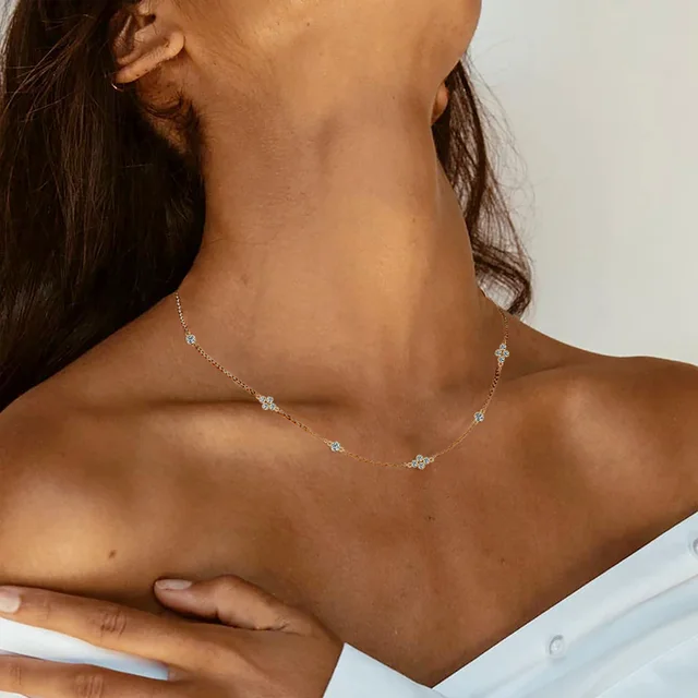 -62%Lnngy 3mm&2mm Moissanite Choker Necklaces Collar Plata 925 Sterling Silver Clavicle Chain Necklace For Women Neck Jewellry Gift