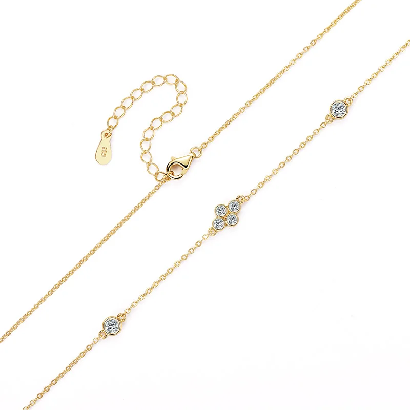 Lnngy 3mm&2mm Moissanite Choker Necklaces Collar Plata 925 Sterling Silver Clavicle Chain Necklace For Women Neck Jewellry Gift