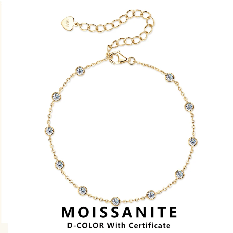 Lnngy 925 Sterling Silver Adjustable Bracelets Certified 2.5mm Bezel Moissanite Cuff Bracelet For Women Hand Chain Jewelry Gift