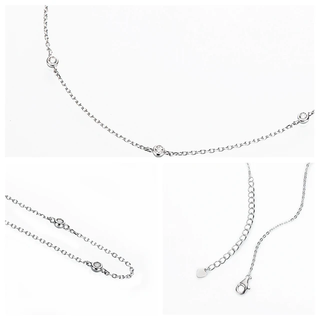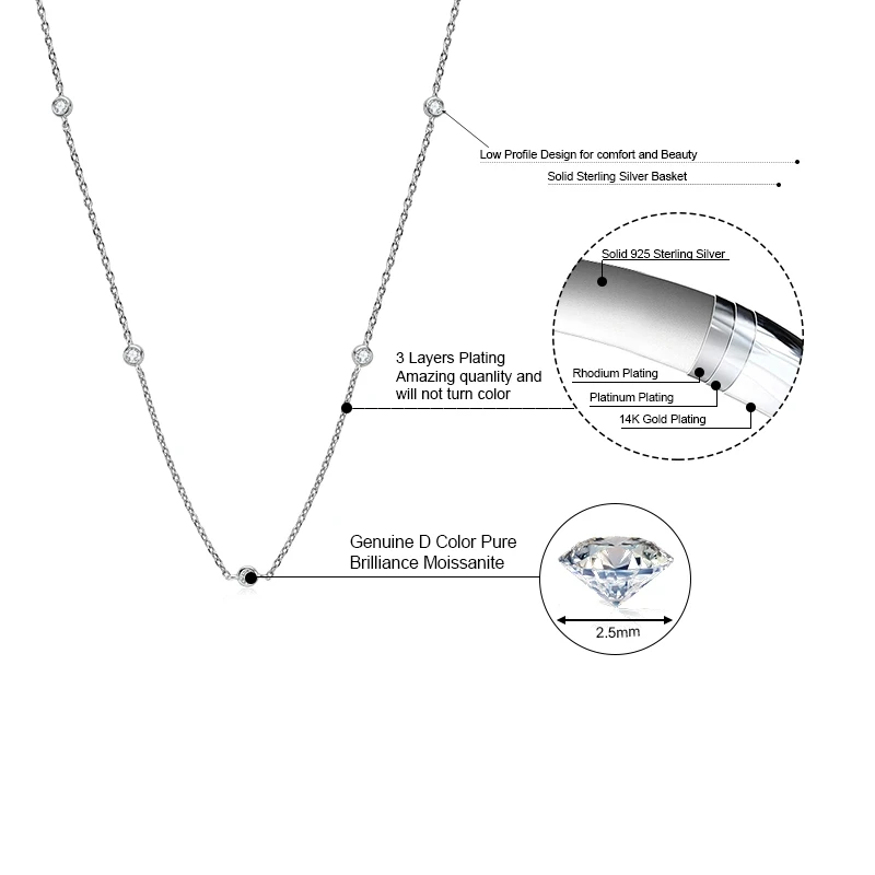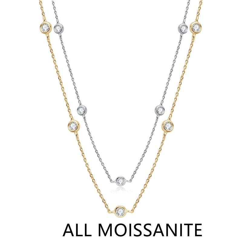 Lnngy 925 Sterling Silver Necklaces Round Cut 2.5mm/4mm Bezel Moissanite Choker Necklace for Women Multilayer