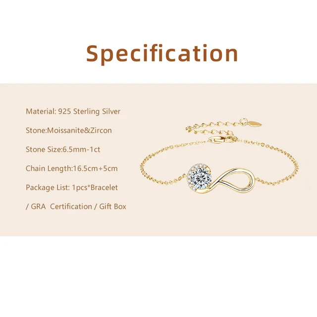 Be the first to review “Lnngy Certified 6.5mm Moissanite Infinity Bracelet for Women 925 Sterling Silver Adjustable Chain Bracelets”