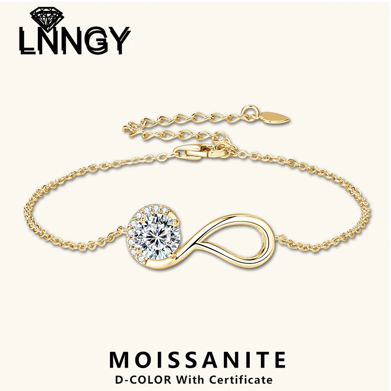 Lnngy Certified 6.5mm Moissanite Infinity Bracelet for Women 925 Sterling Silver Adjustable Chain Bracelets Jewelry Gift