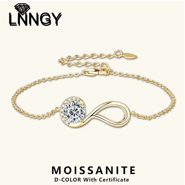 Lnngy Certified 6.5mm Moissanite Infinity Bracelet for Women 925 Sterling Silver Adjustable Chain Bracelets