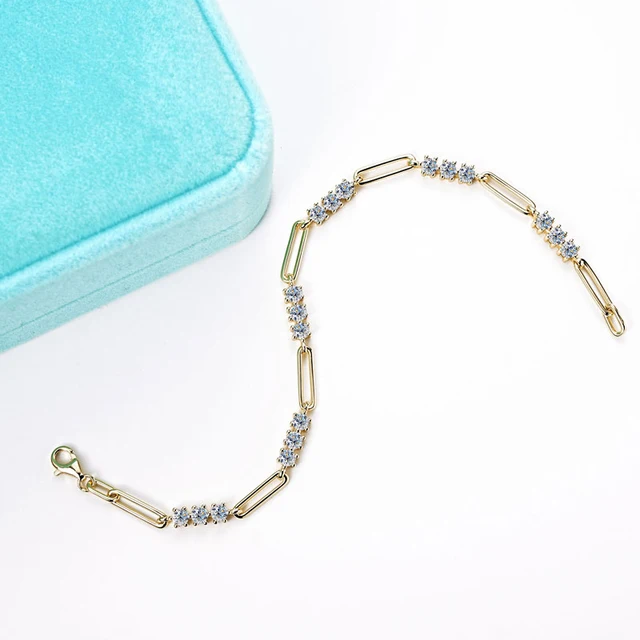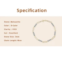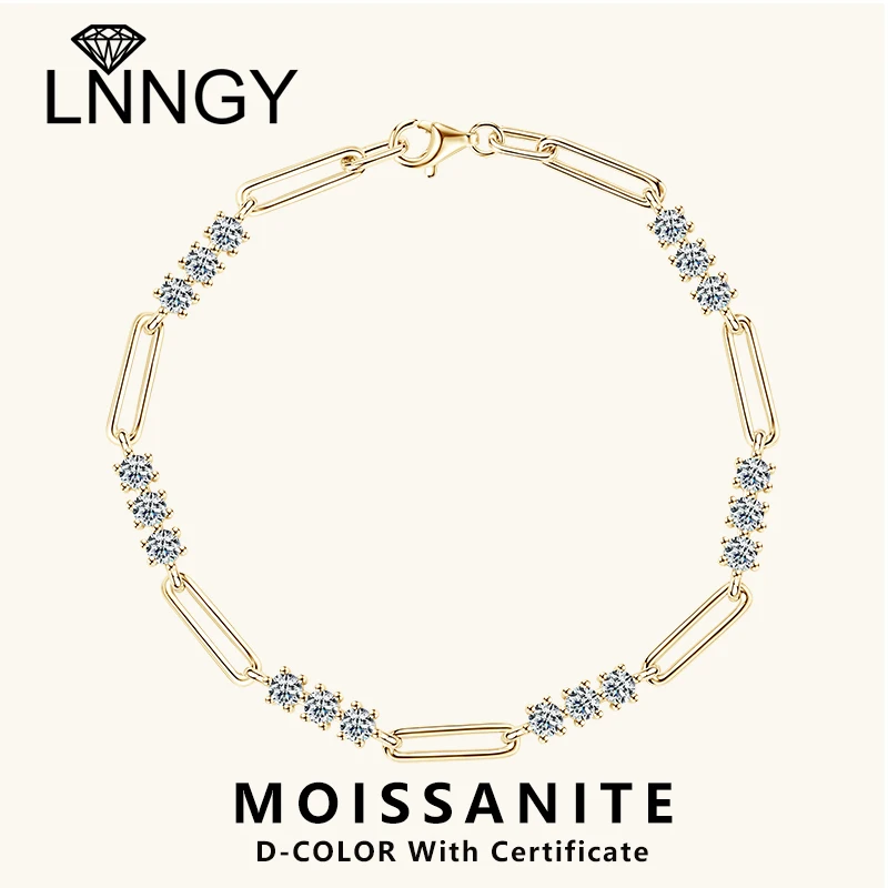 Lnngy Certified Round 3MM Moissanite Bracelet For Women 925 Sterling Silver Adjustable Chain Bracelets Fashion Hand Jewelry Gift