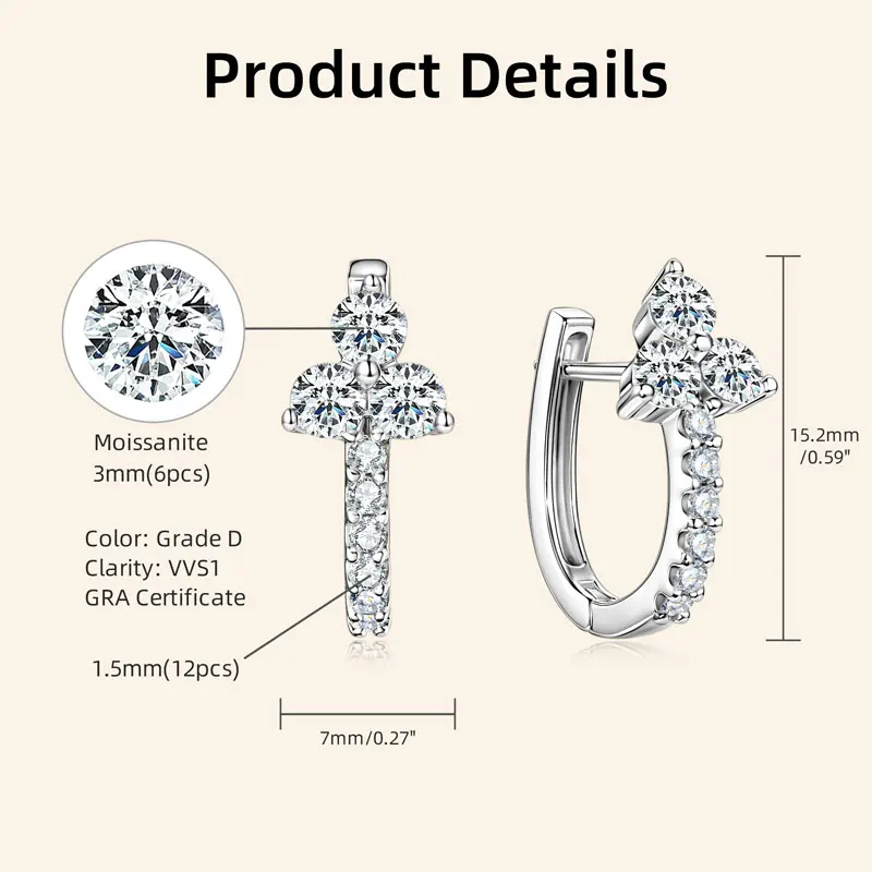 Be the first to review “Lnngy Certified U-shaped Moissanite Hoop Earring Trendy 925 Sterling Silver Circle Earrings For Women”