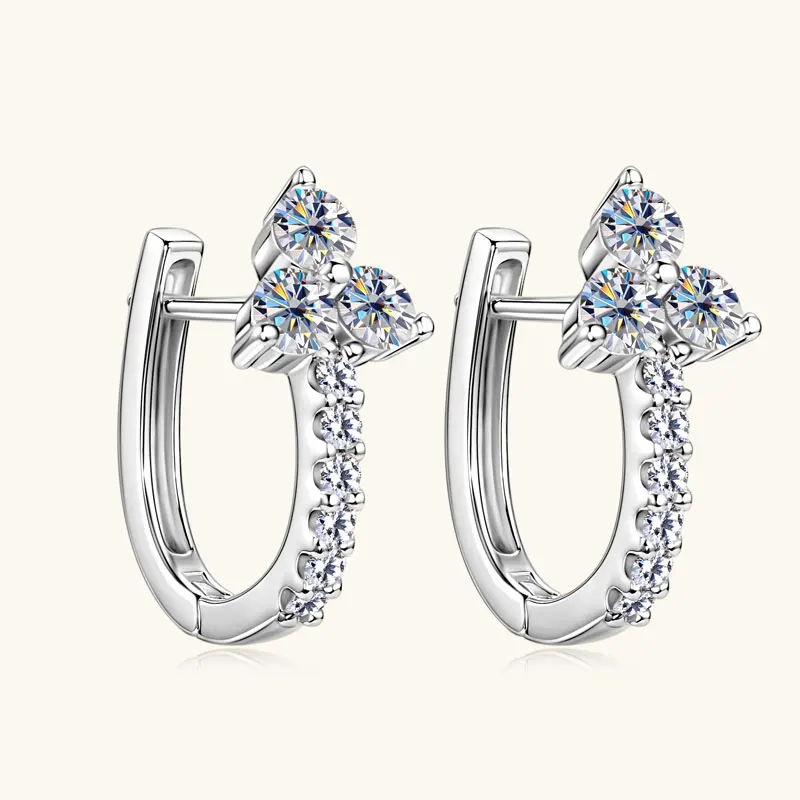 Lnngy Certified U-shaped Moissanite Hoop Earring Trendy 925 Sterling Silver Circle Earrings For Women