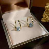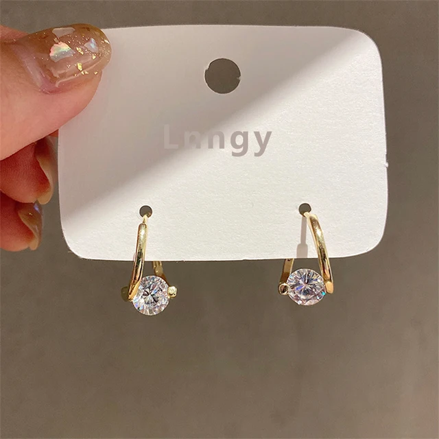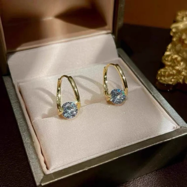 Lnngy Huggies Earrings Sterling Silver 925 Fashion Korean Bling 6.5mm 1.0ct Moissanite Hoop Earring For