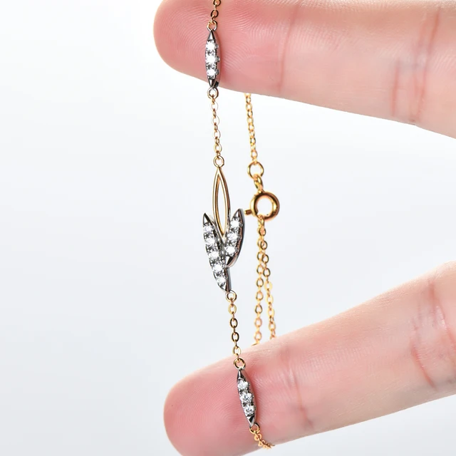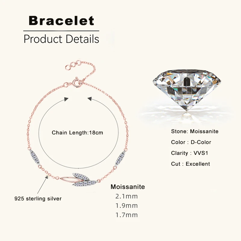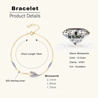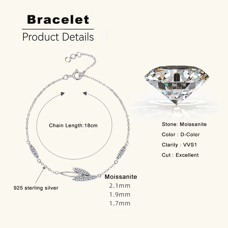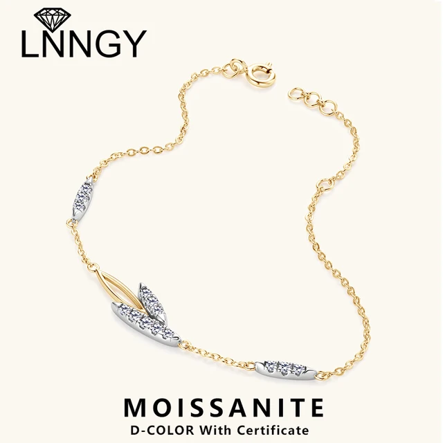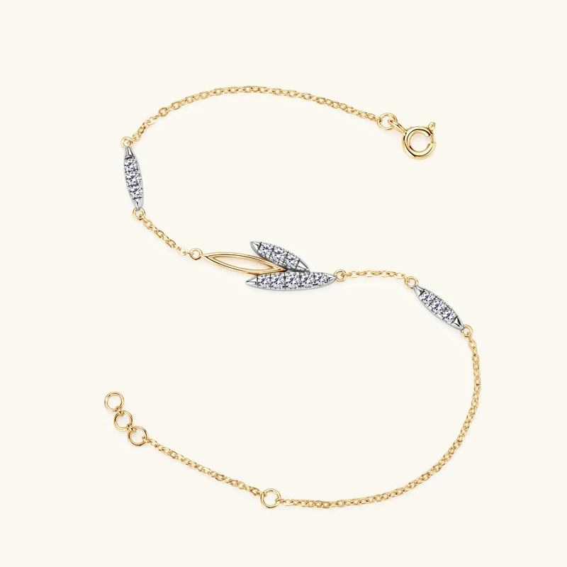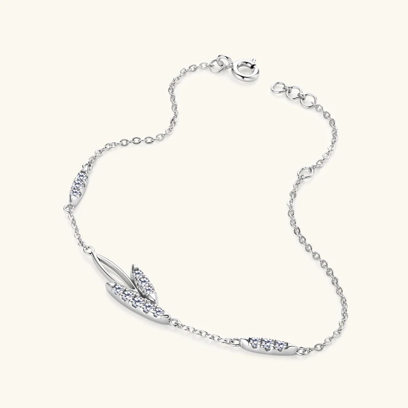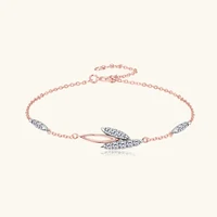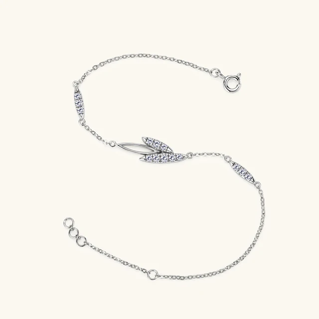 Lnngy Korean INS Leaves Shape Moissanite Bracelet for Women 925 Sterling Silver Shiny Chain Bracelets Temperament Jewelry Gift
