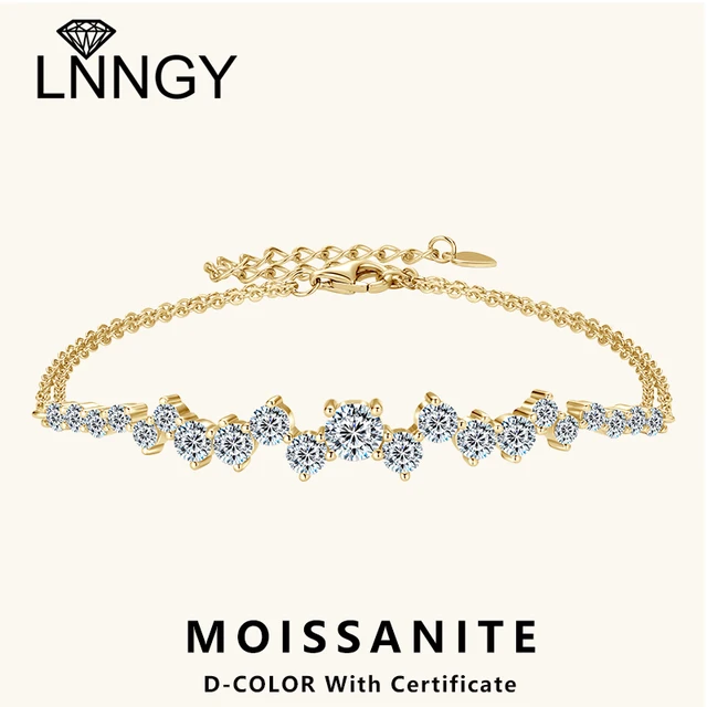 Lnngy Moissanite Bracelet With Certificate 925 Sterling Silver Adjustable Double Chain Bracelets for Women 2025 New Jewelry Gift