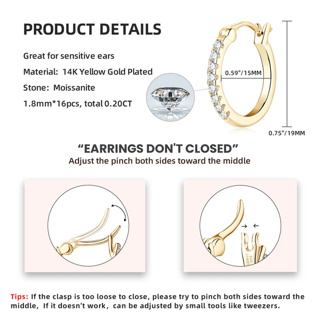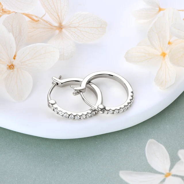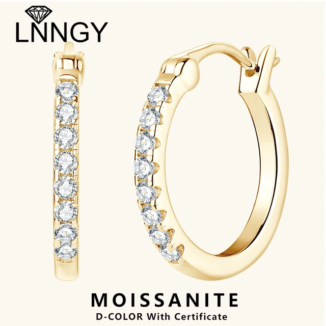 Lnngy Round Cut 1.8mm Single Row Moissanite Hoop Earrings Fo Women Girls 925 Sterling Silver Circel Earring