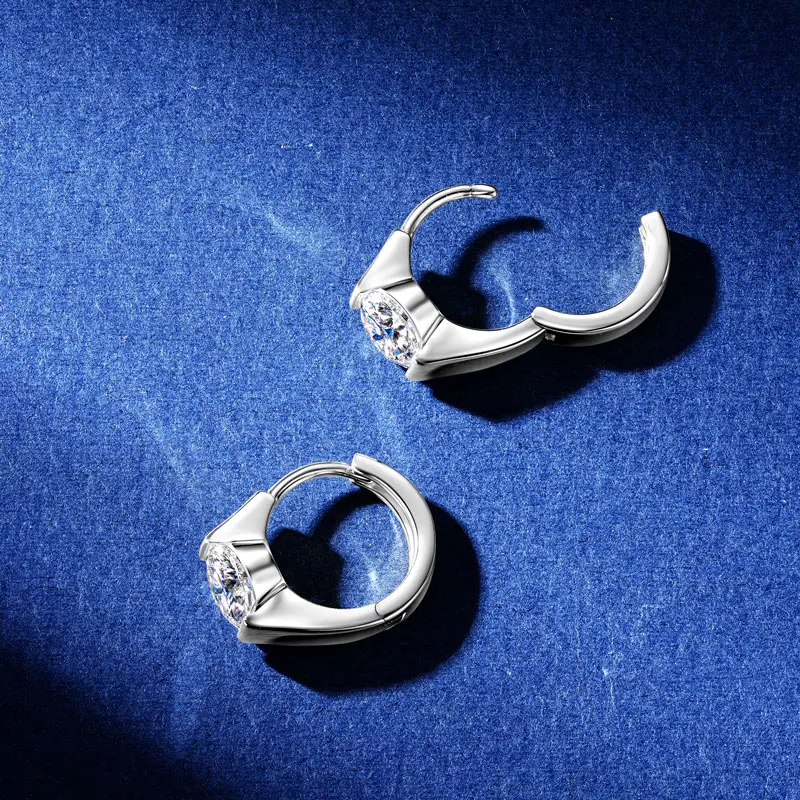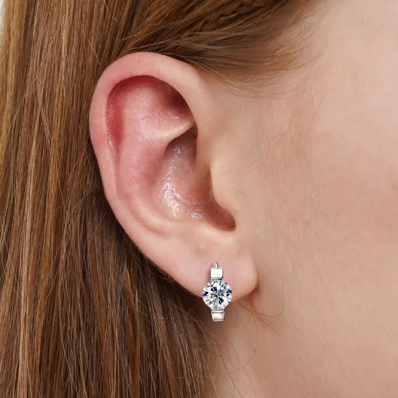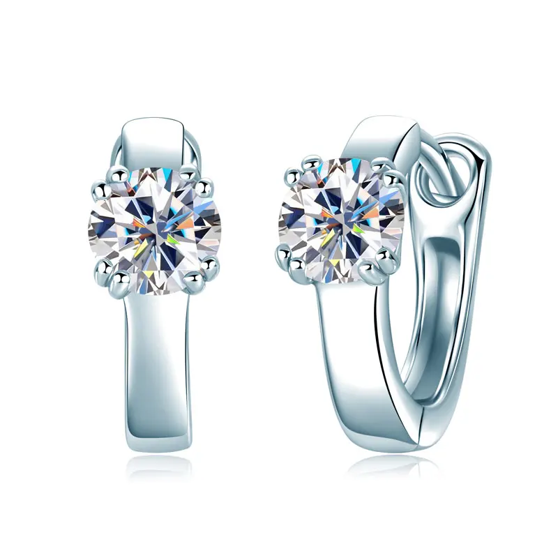 Lnngy Solitaire 5MM 0.5CT Moissanite Hoop Earrings For Women Oorbellen Zilver 925 Sterling Silver U-shaped Earring Jewelry Gift