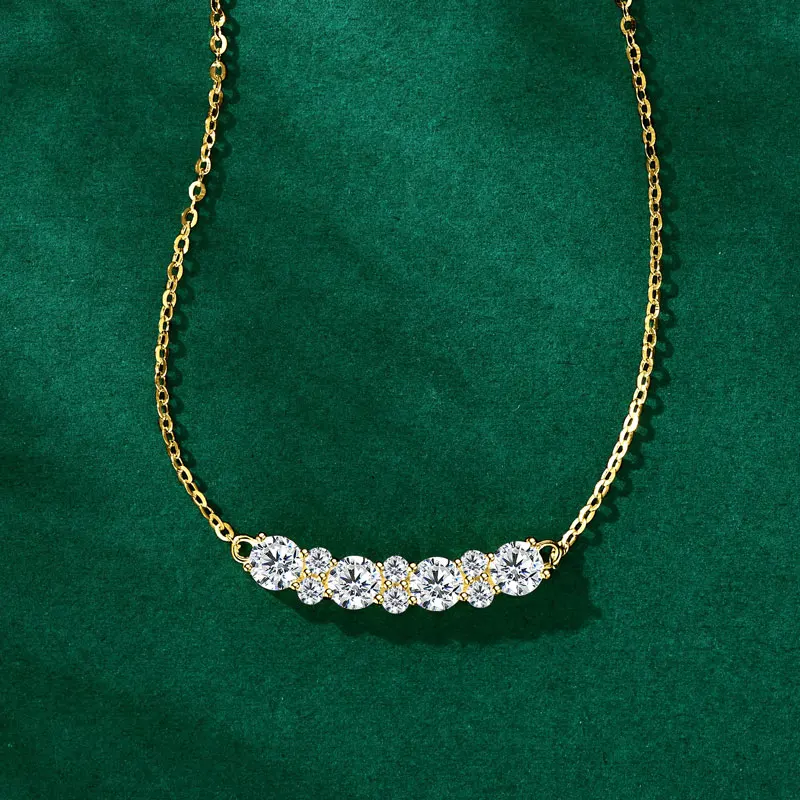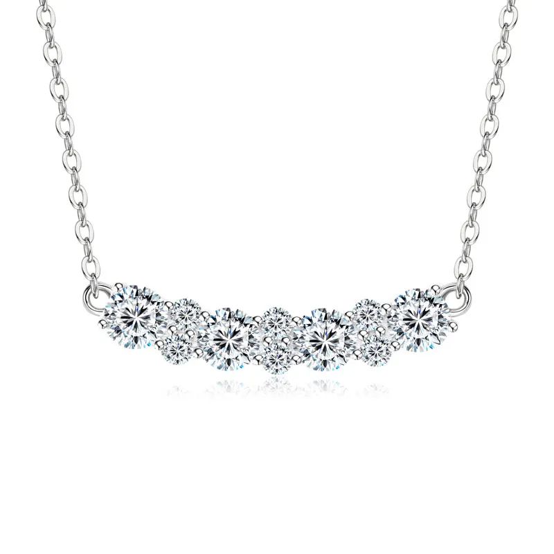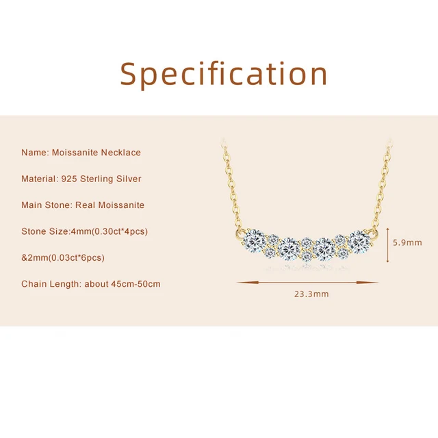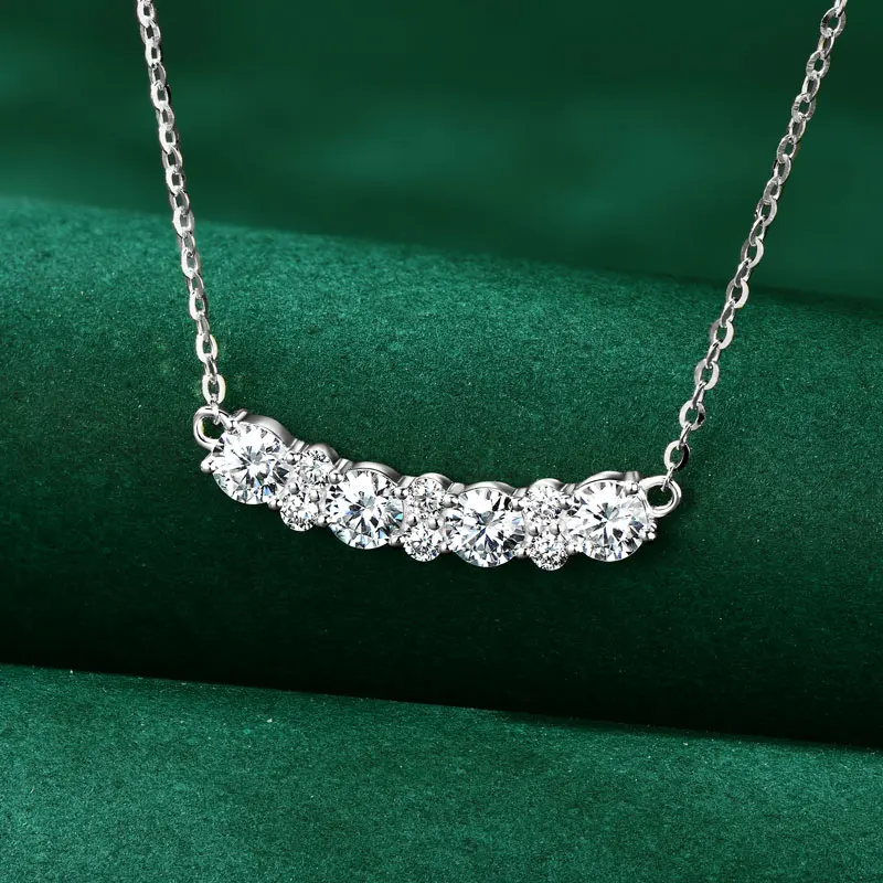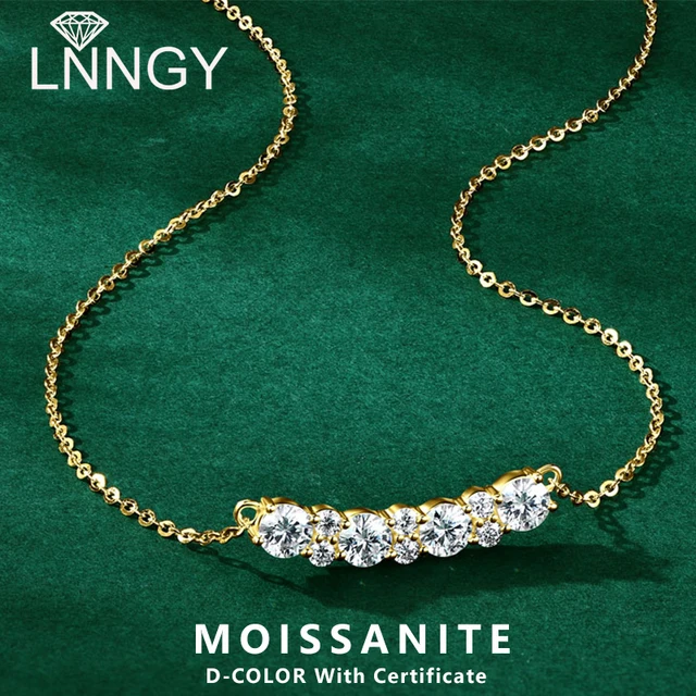 Lnngy Sparkling 4MM&2MM Moissanite Necklace With Certificate Real Silver Chain 925 for Women Girl Pendant Necklaces Jewelry Gift