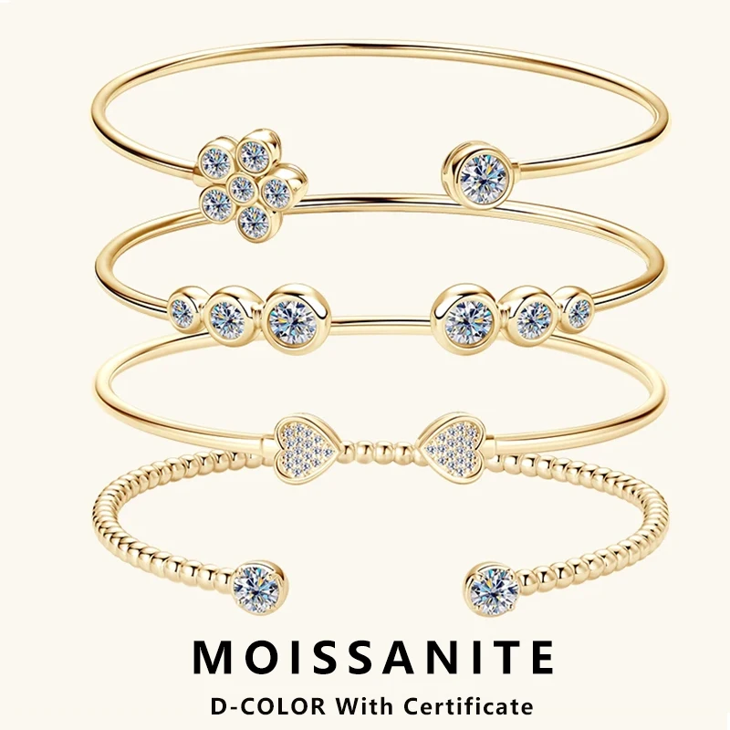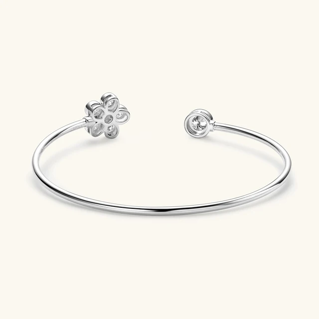 Lnngy Sparkling Moissanite Bracelets For Women Girl Original and Pure 925 Sterling Silver Cuff Bracelet Open Wrist Jewelry Gift