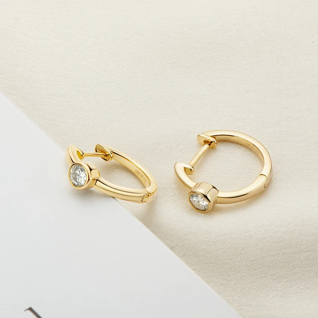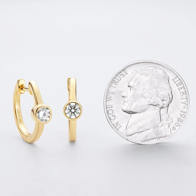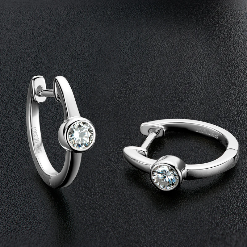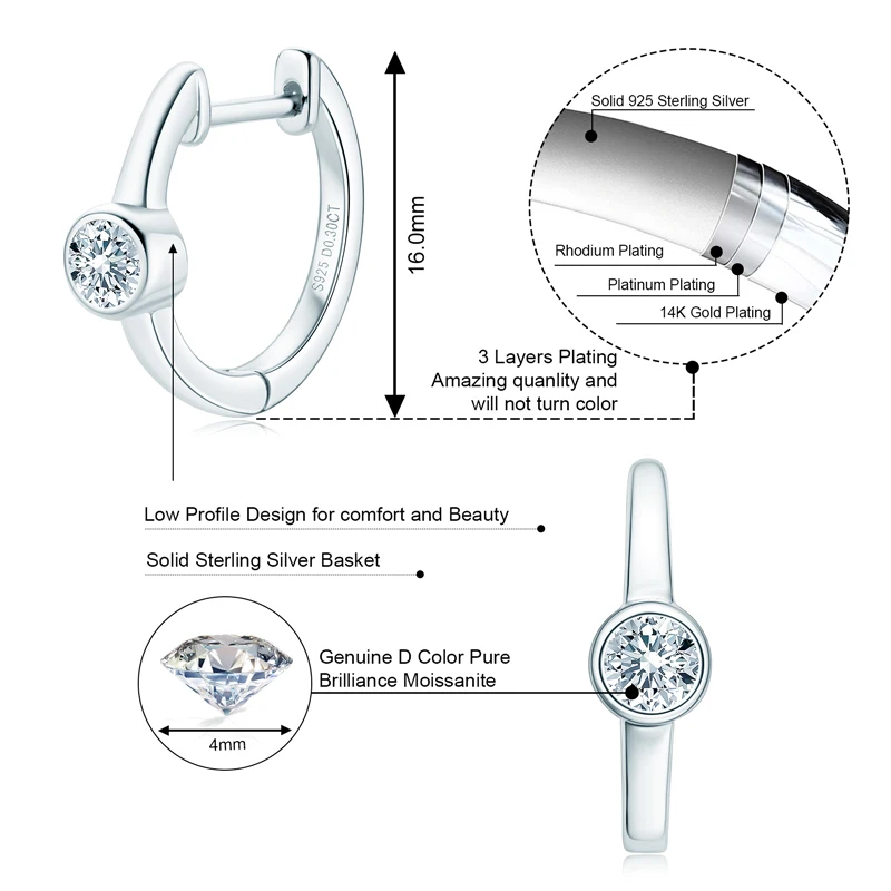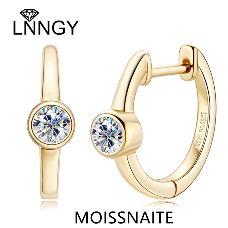 Lnngy Sterling Silver Earrings 925 Exquisite Bezel Setting 4MM 0.3CT Moissanite Hoop Earring For Women