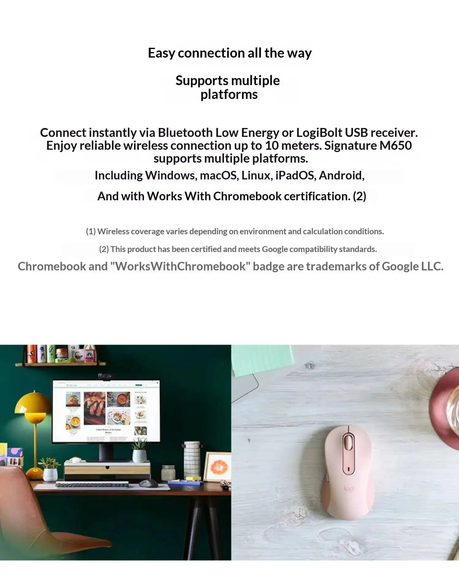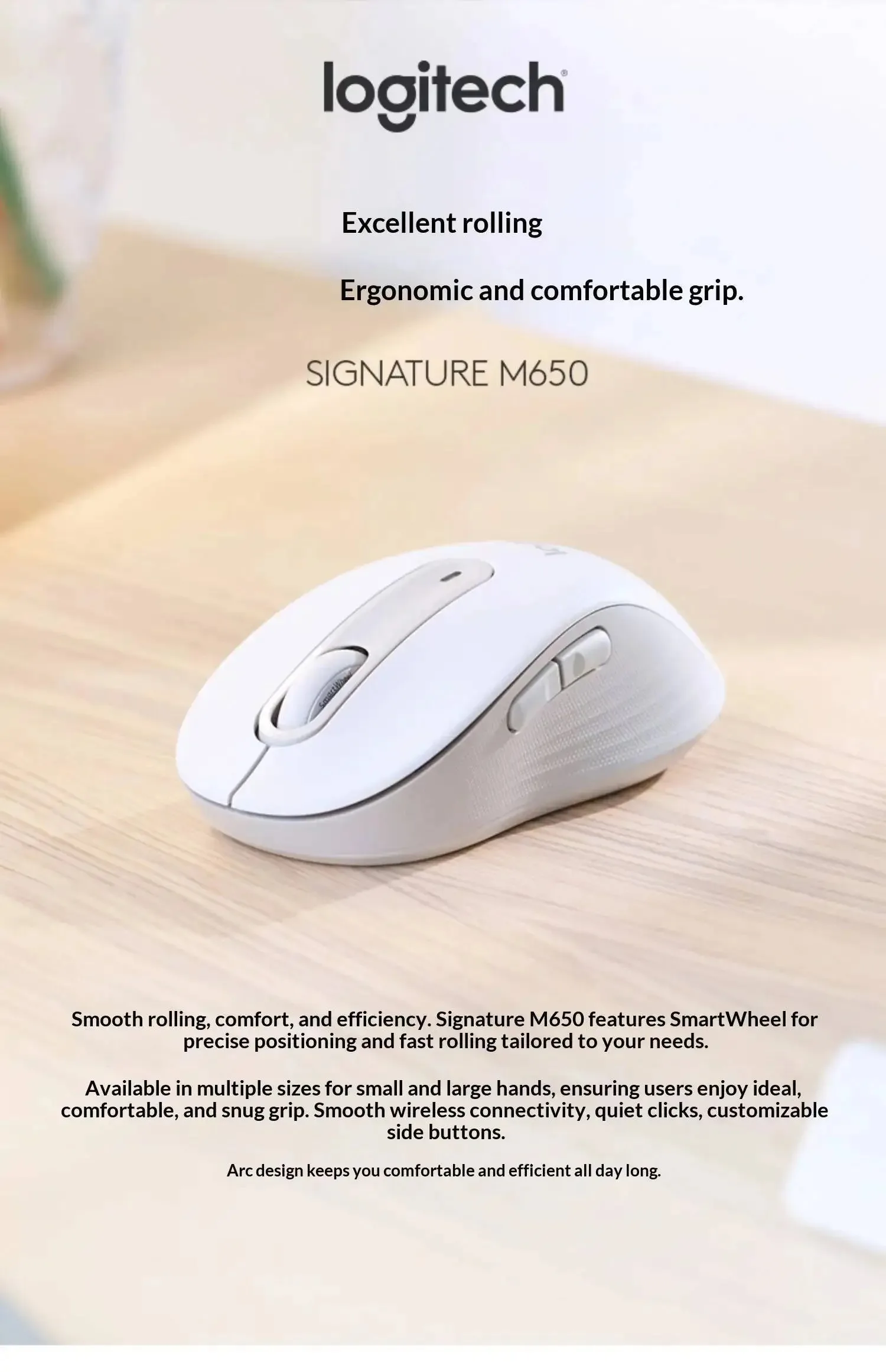 Logitech M650L Multi-Device Bluetooth Mouse Ergonomic Silent Click 2.4GHz Wireless For Chromebook Tablet