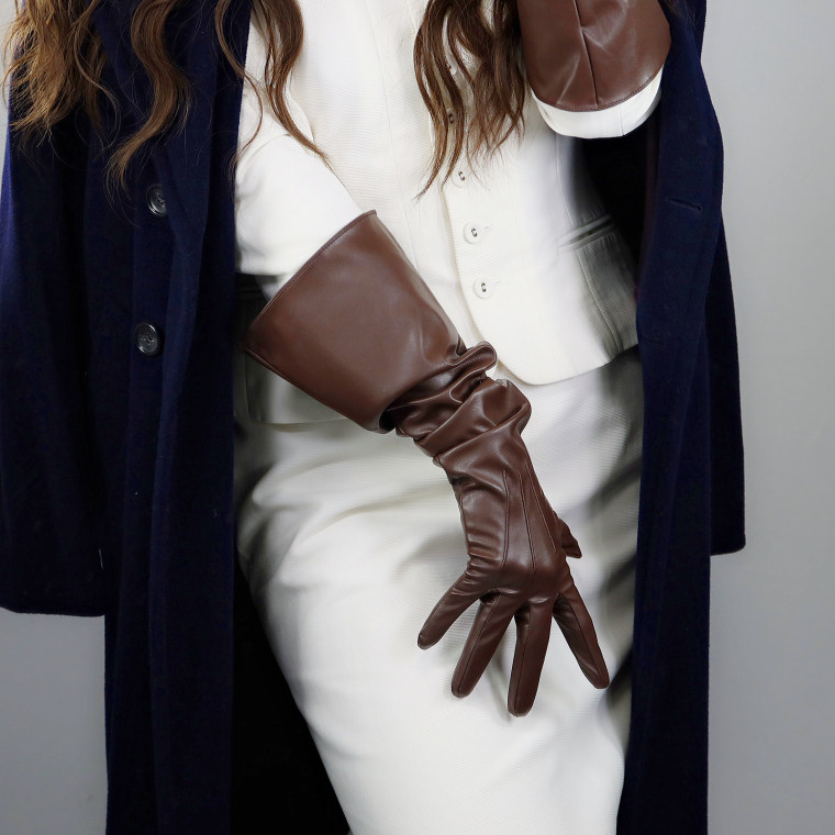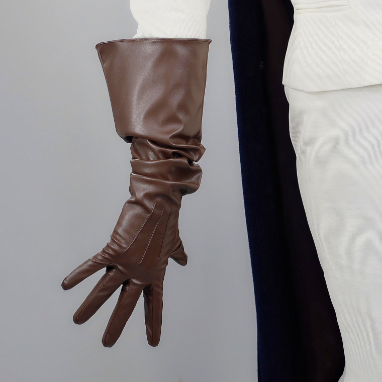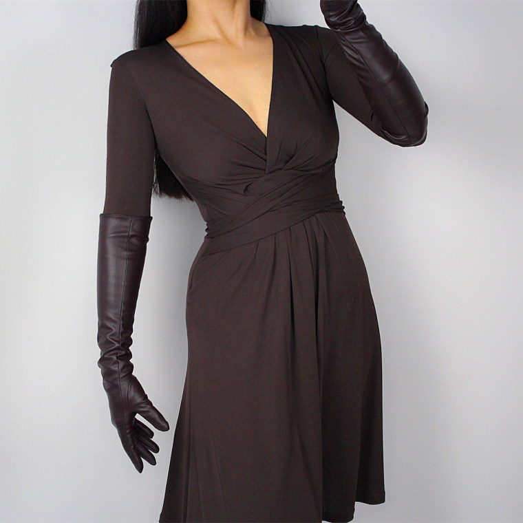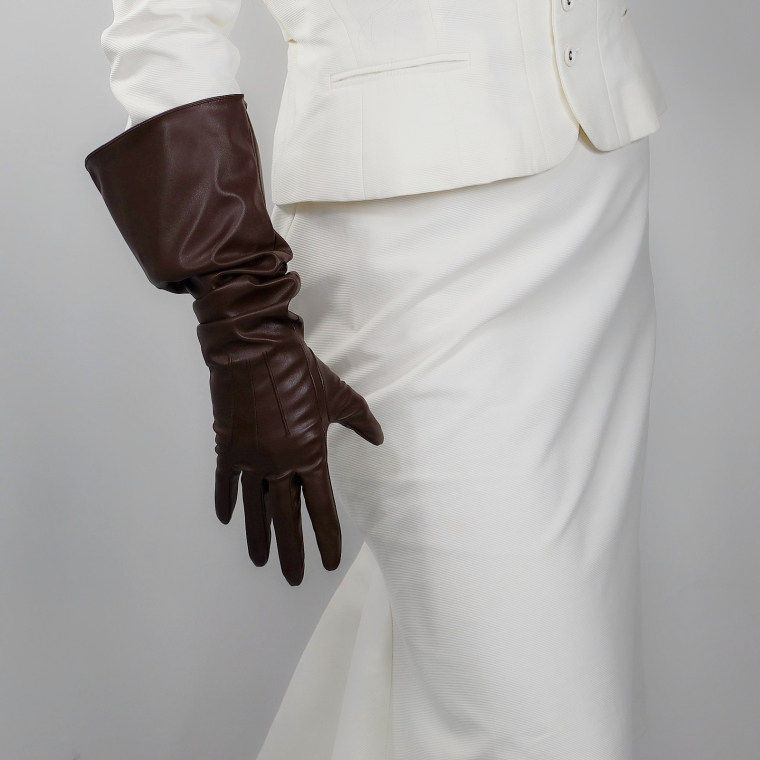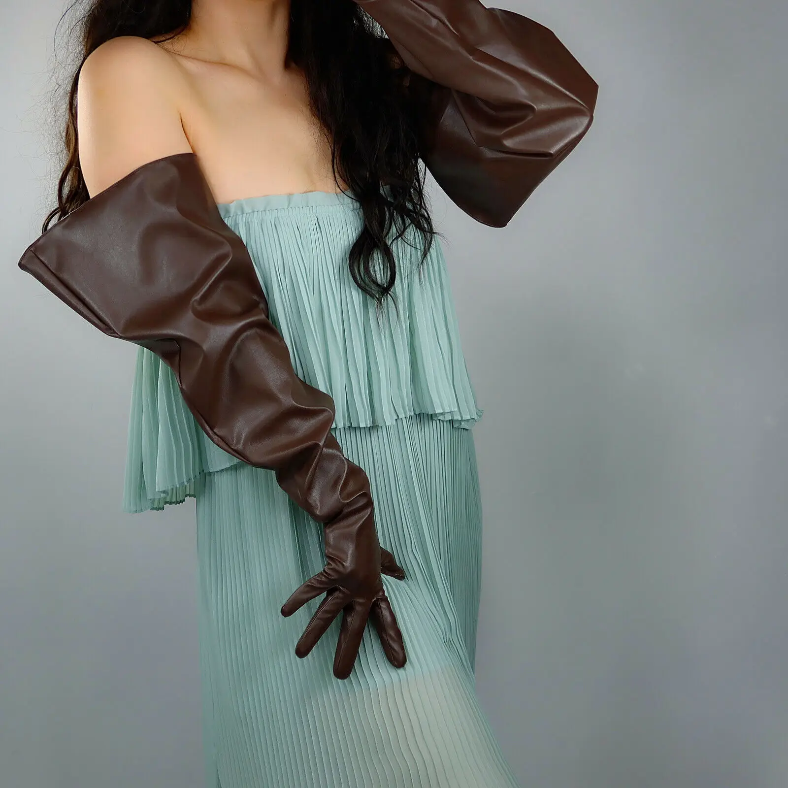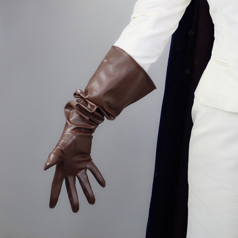 LONG GLOVES Faux Leather PU 35" 90cm Coffee Brown Loose L Unisex PUFF SLEEVES LLDLLNT
