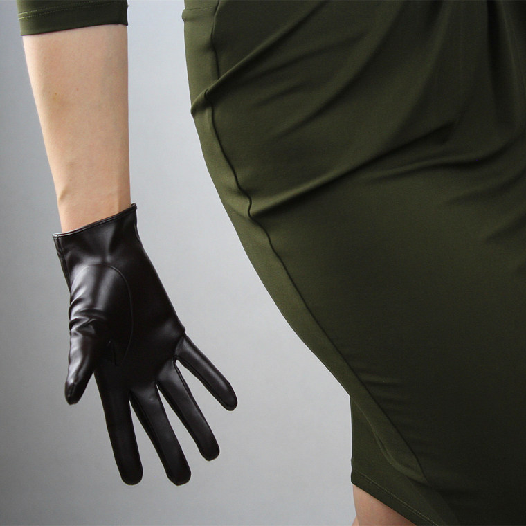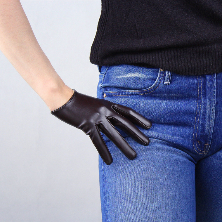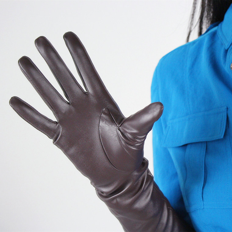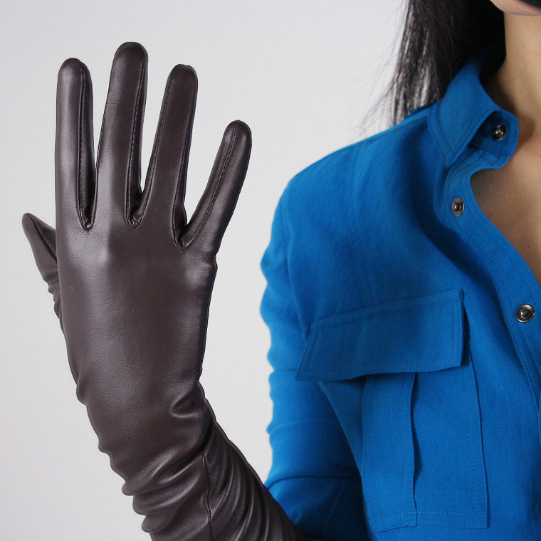 LONG GLOVES Faux Leather PU 35″ 90cm Coffee Brown Loose L Unisex PUFF SLEEVES LLDLLNT