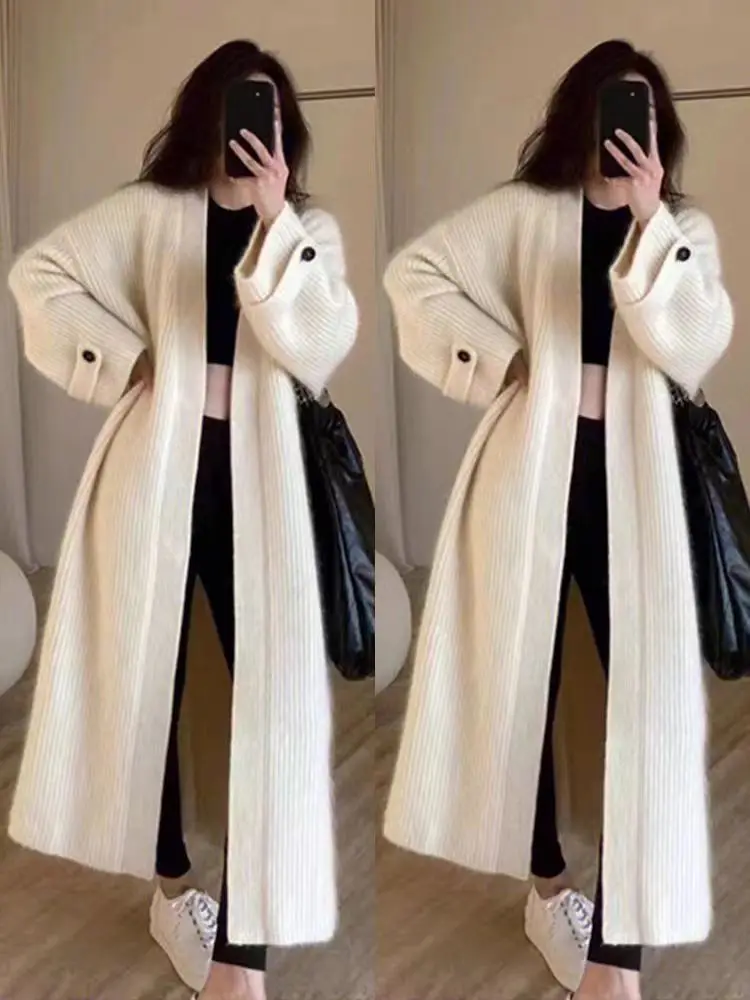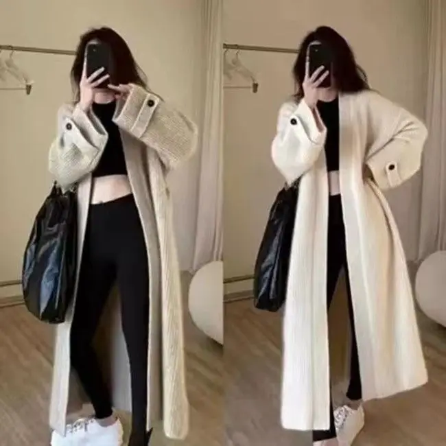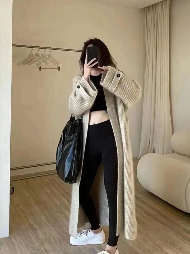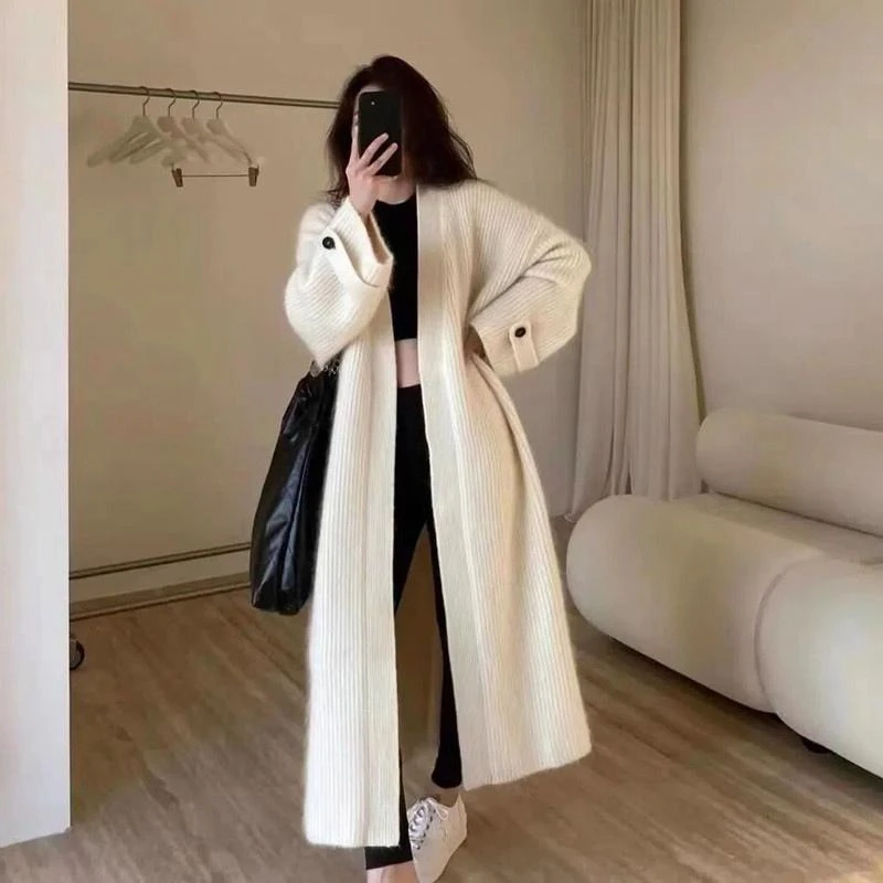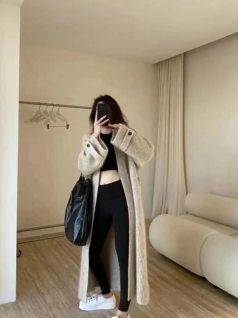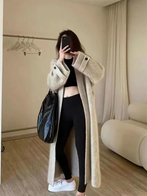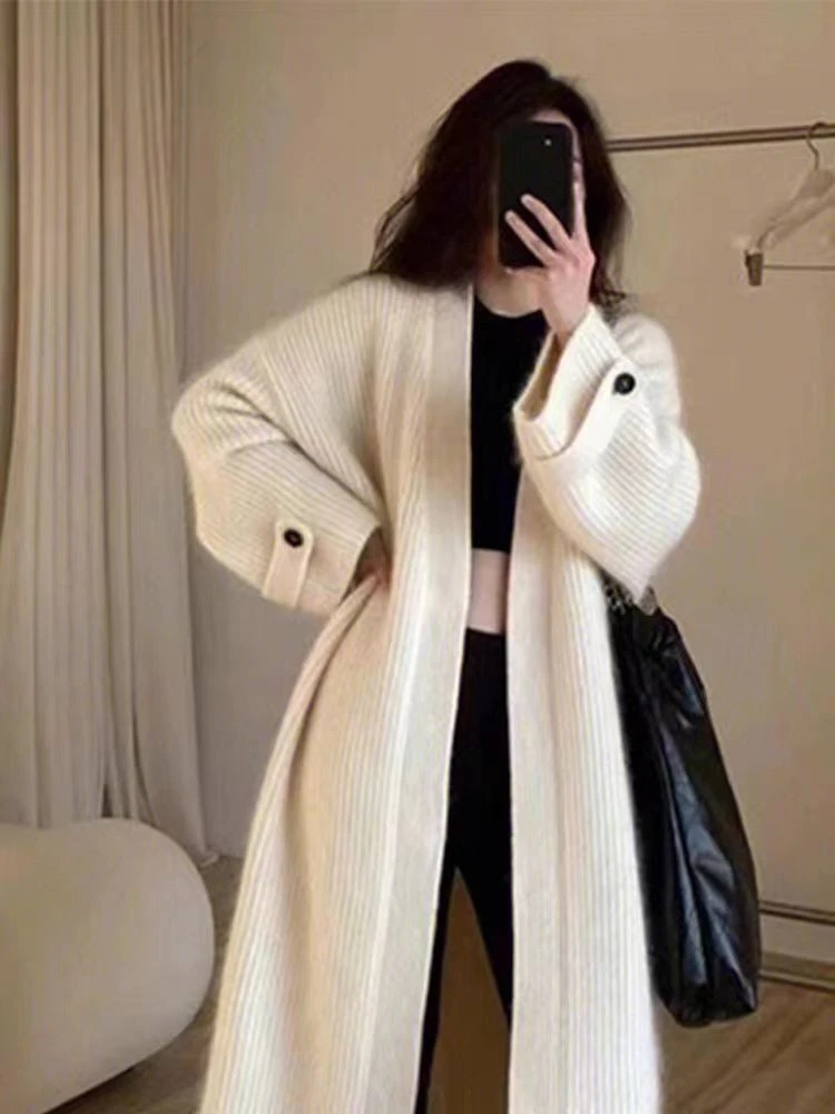 Long Ladies Knit Sweaters Fashion 2025 Lightweight Casual New in Knitwear Trend Korean Streetwear Sleeve Solid Women's Cardigans