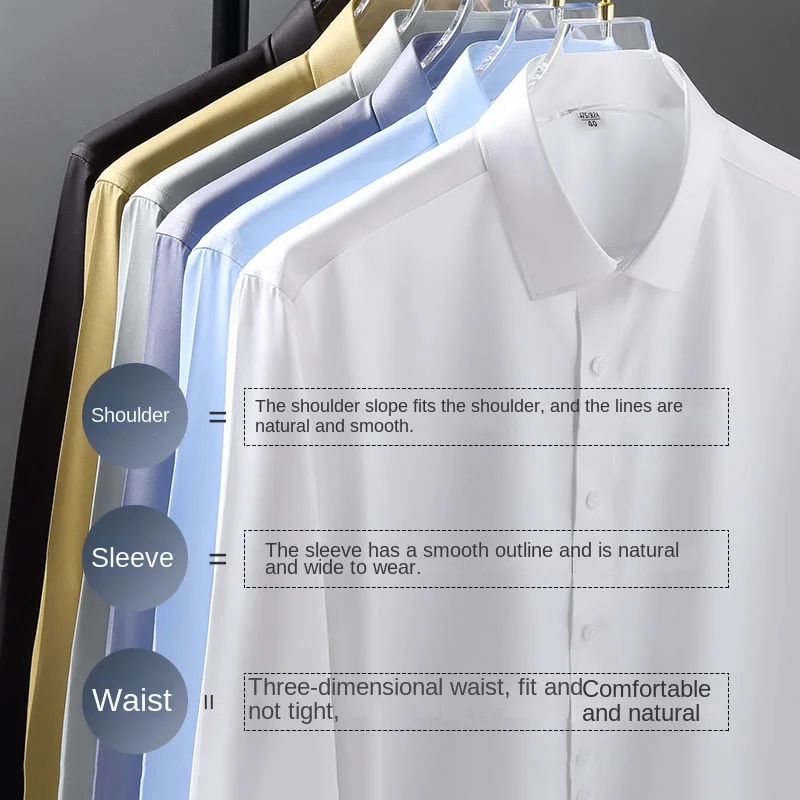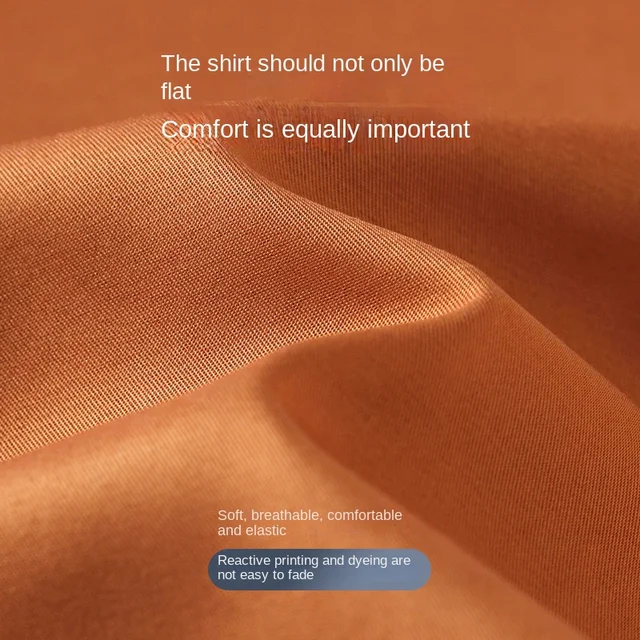 Long sleeved shirt for men’s business casual orange non ironing wrinkle resistant elastic solid