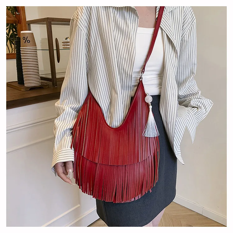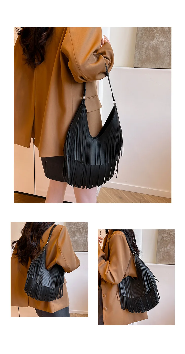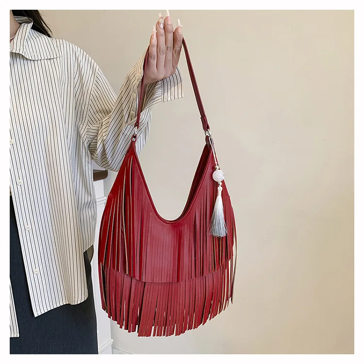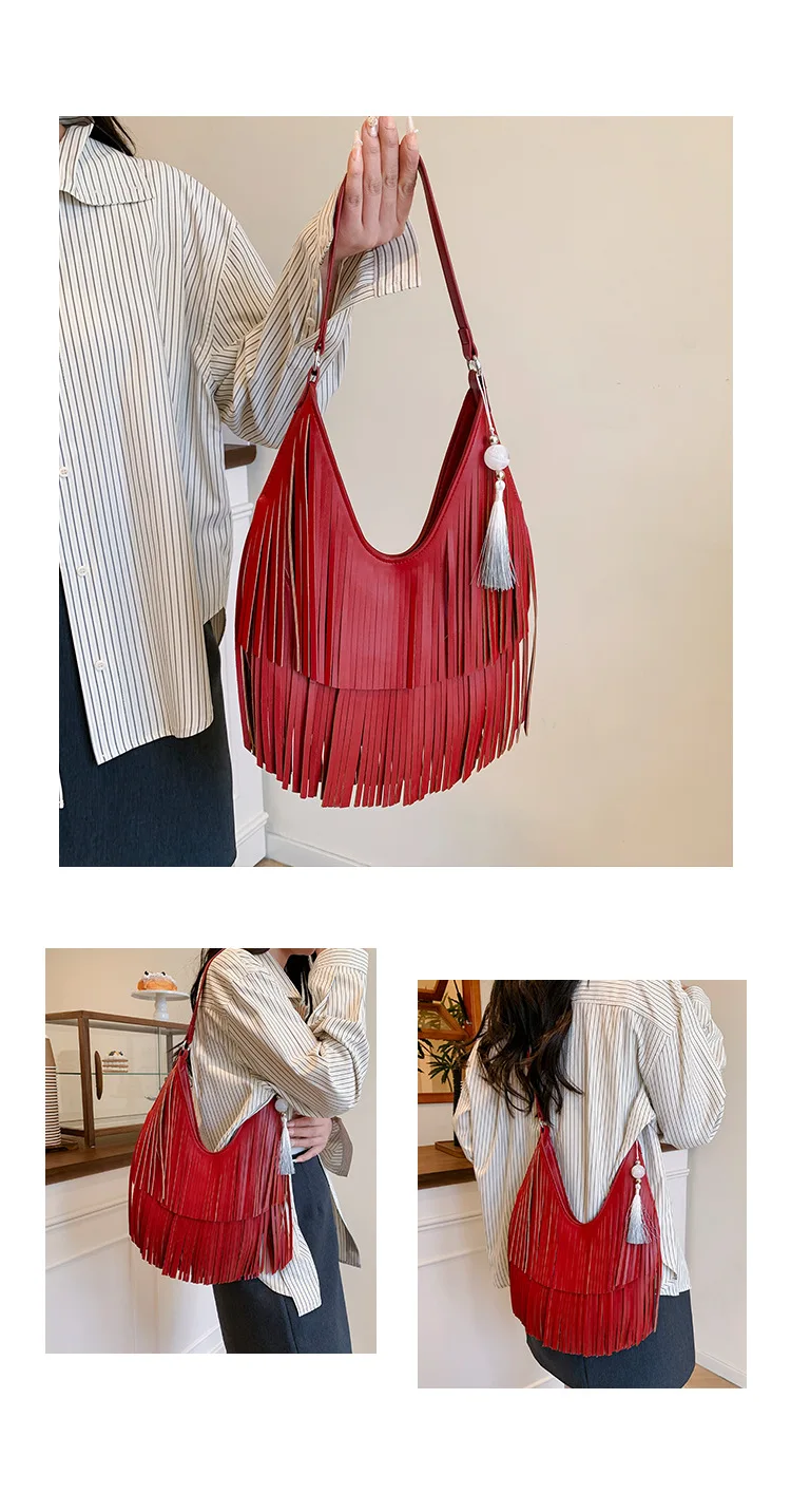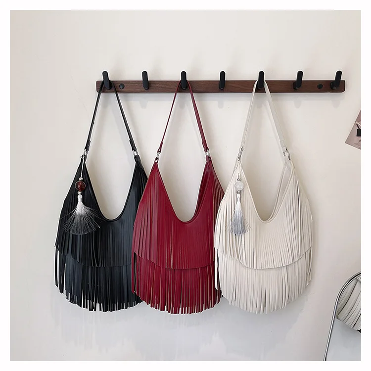 Fashion Hoop handle women handbag Long Tassel female Shoulder Bags Design PU Leather female Messenger Bag Ladies totes Bolsa