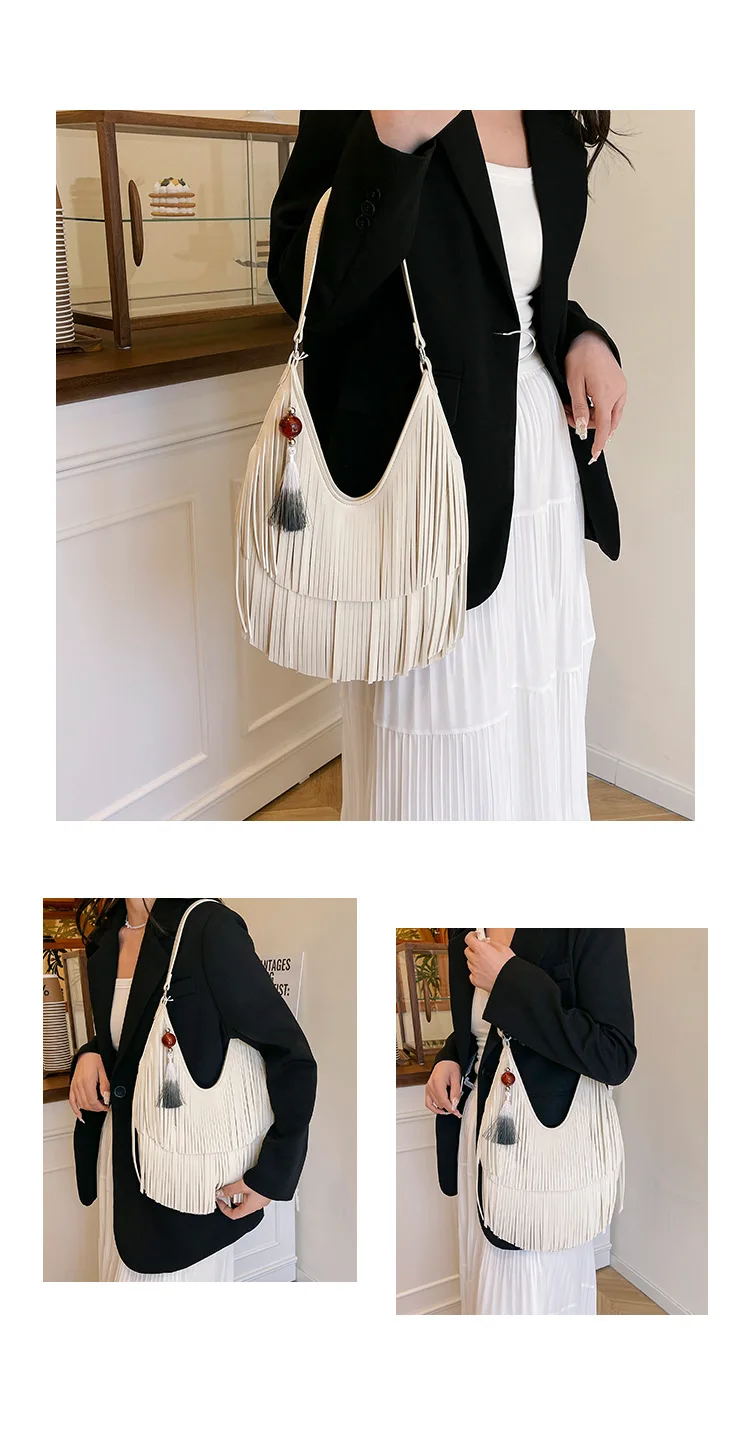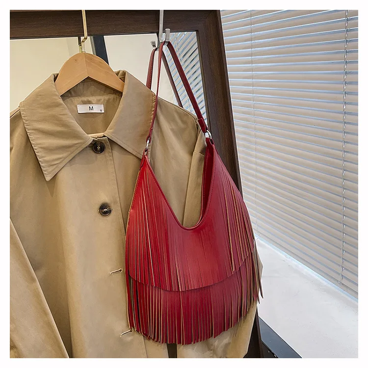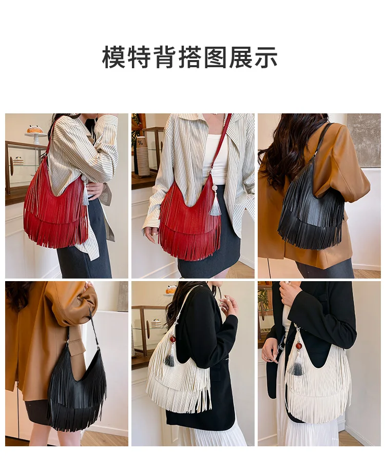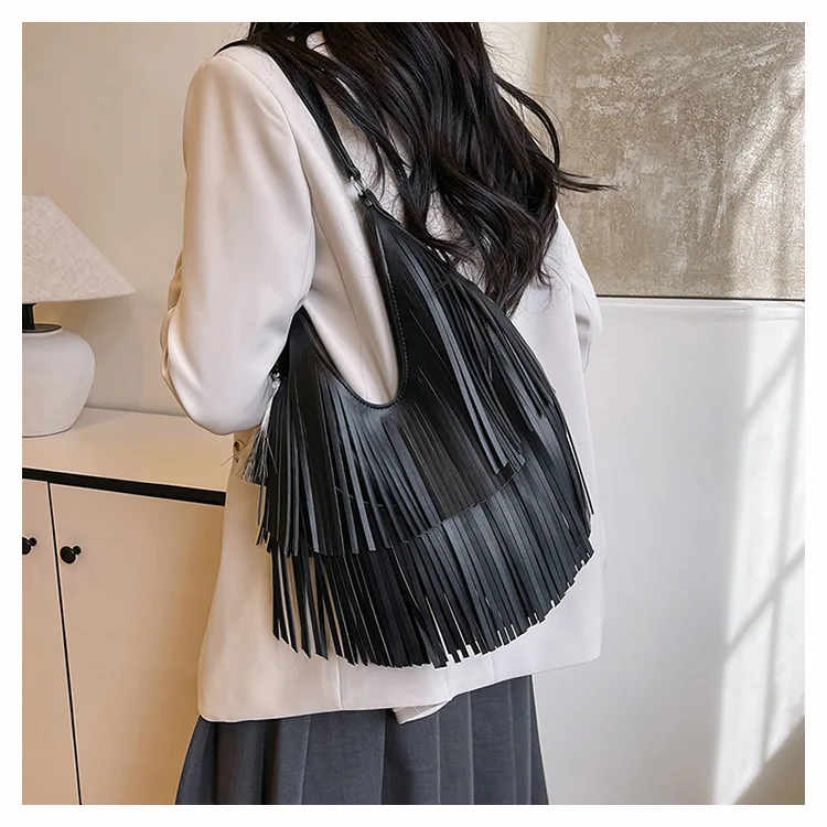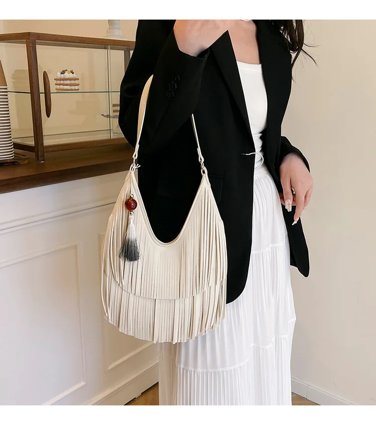 Fashion Hoop handle women handbag Long Tassel female Shoulder Bags Design PU Leather female Messenger Bag Ladies totes Bolsa