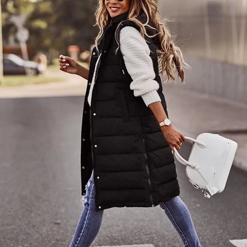 Long with Hood Outdoor Vest Down Women’s Jacket Quilted Coat Sleeveless Jacket Winter Light Weight