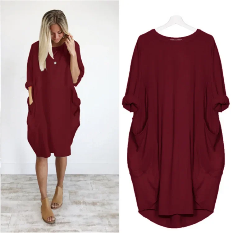 Loose Casual Long Sleeve Dress with Pockets in plus Sizes Eight Colors Eight Codes Wish Women’s
