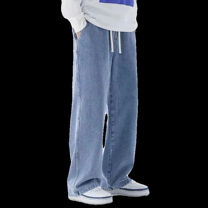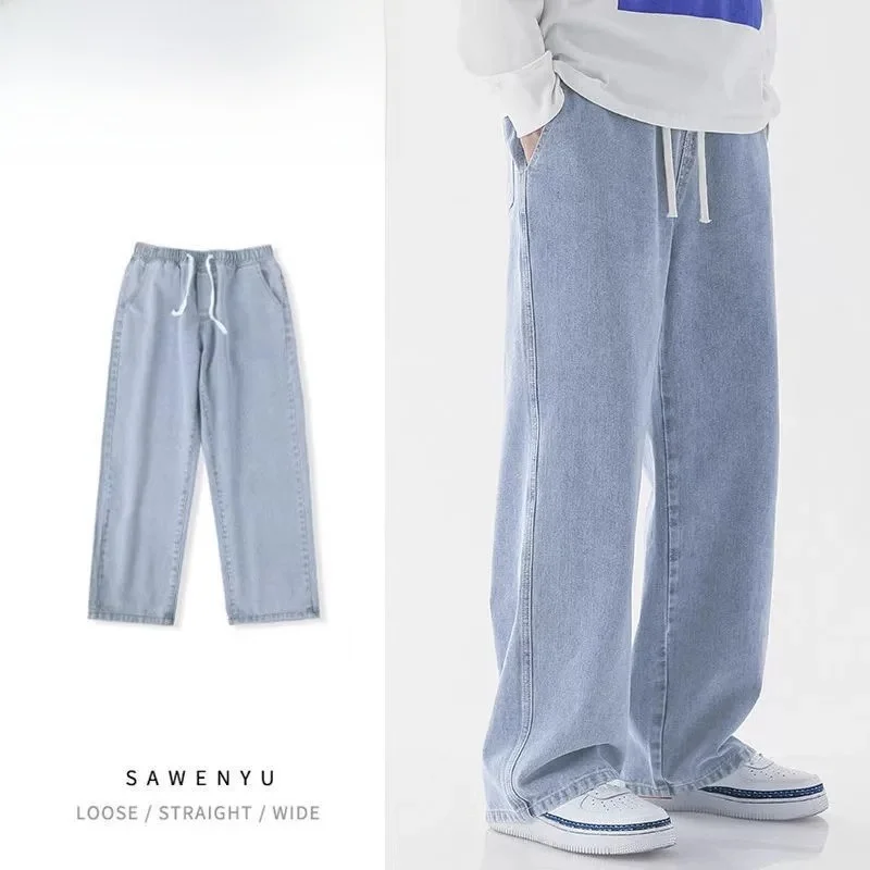 Loose Casual Men's Dstring Denim Jeans High Street American Sle Spring Autumn Straight Leg Wide Leg Pants