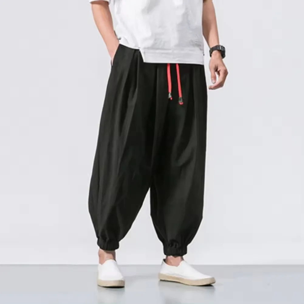 Light Wash Men's Drawstring Jeans Loose Straight Leg Floor-Length Trendy Casual Wide Leg Long Trousers Comfortable Fit