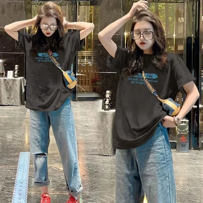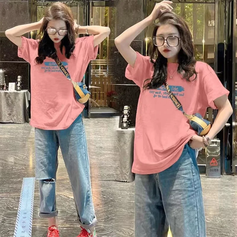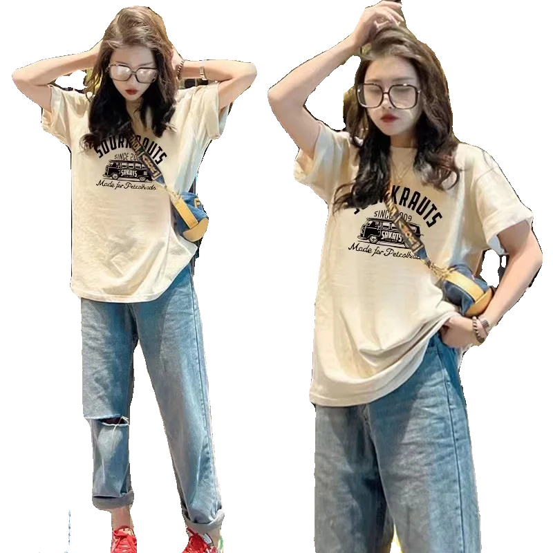 Loose Casual round Ne ort Sve T-irt Women's Spring Summer New Faion Print Base irt f Sve Base Layer Top
