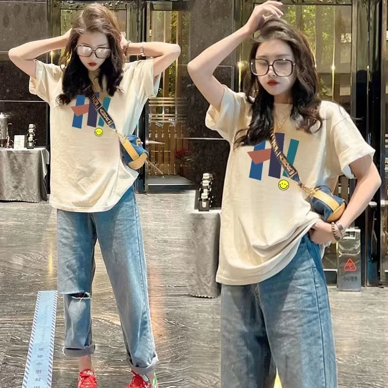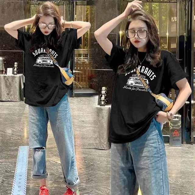 Loose Casual round Ne ort Sve T-irt Women’s Spring Summer New Faion Print Base irt f Sve Base Layer