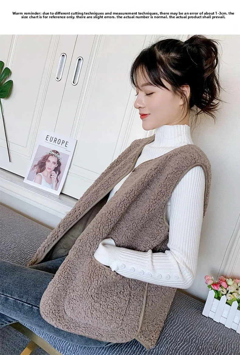 • Faux Lamb Velvet Material : Crafted from soft faux lamb velvet, this vest offers a luxurious feel and cozy warmth for the cooler months.