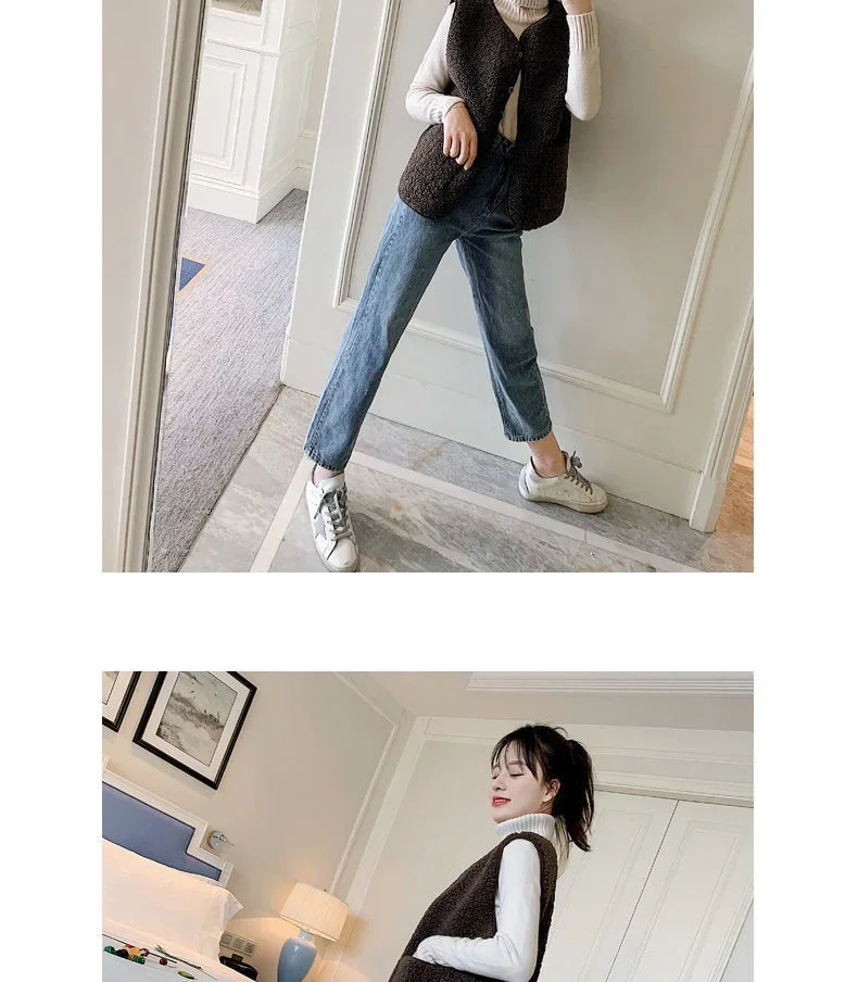 • Faux Lamb Velvet Material : Crafted from soft faux lamb velvet, this vest offers a luxurious feel and cozy warmth for the cooler months.