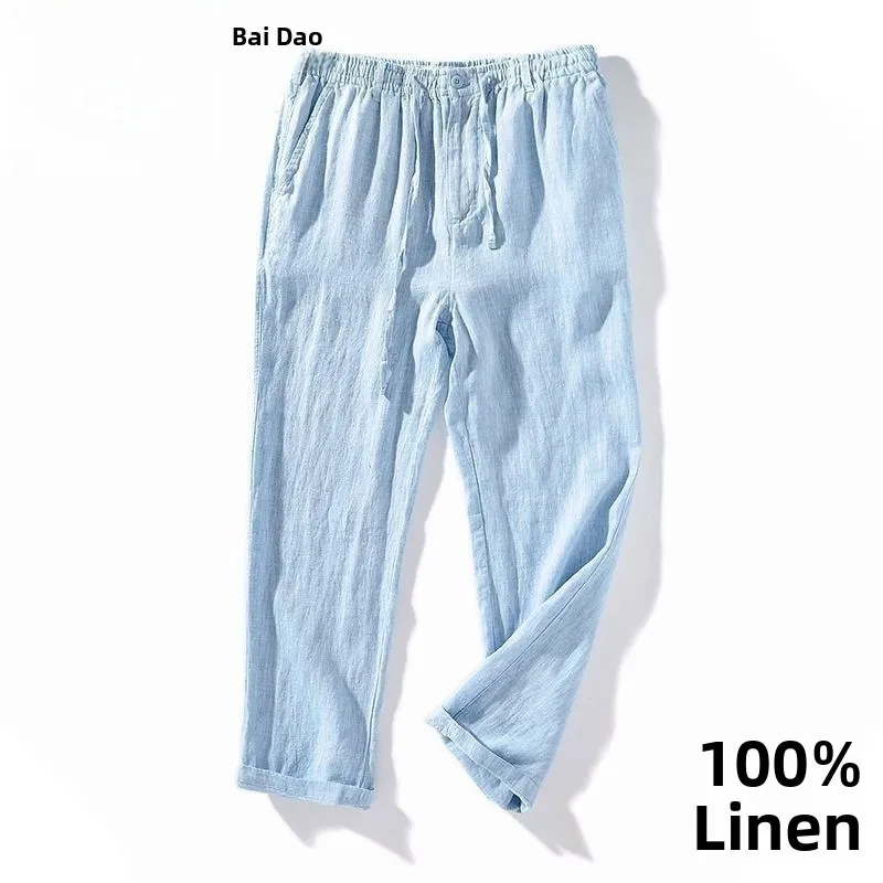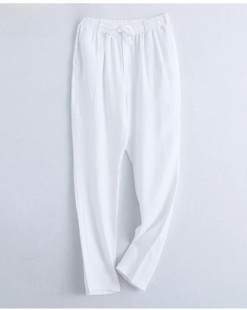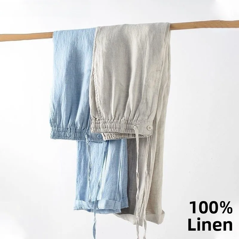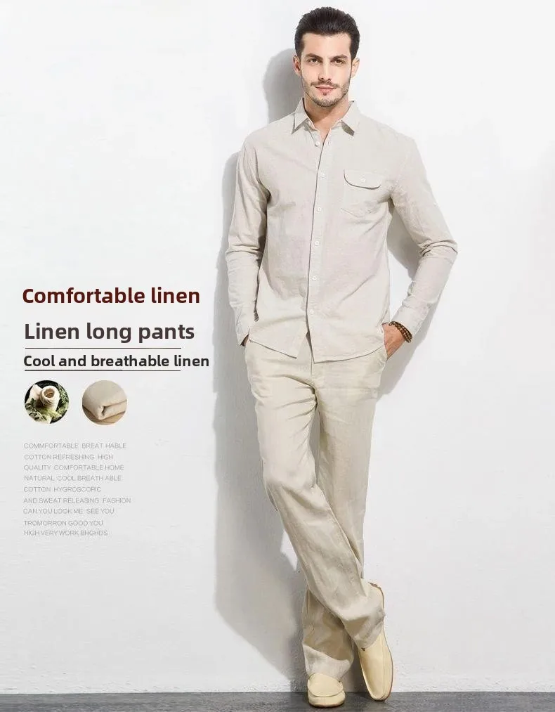 Crafted from pure cotton and linen, these men’s casual pants offer a breathable and comfortable wear, perfect for the warmer months.